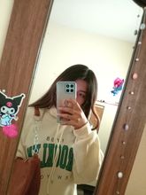 Me quedo enorme porque la pedí en talla L, pero de ahí en fuera muy linda Es suave y la tela es calientita.
