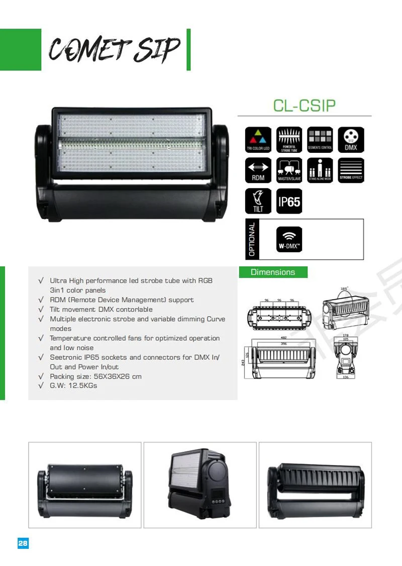 SUNART-Comel Sip 480*0,5 W RGB 3 en 1 LED estroboscópico efecto de escenario, inalámbrico DMX Wash Flood para DJ, cabezal móvil Ip65, resistente al agua