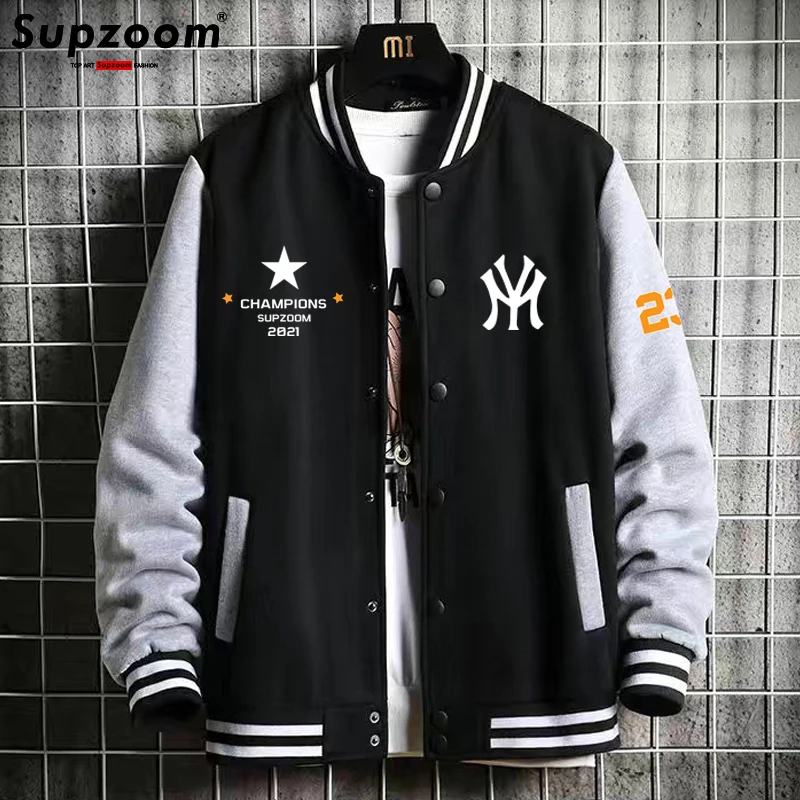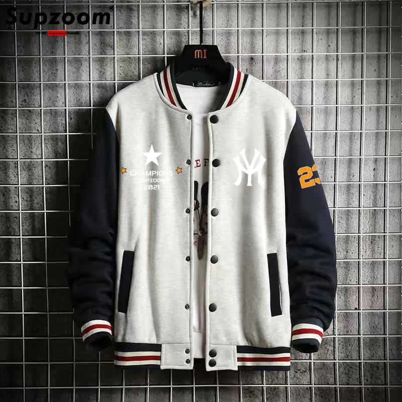 Supzoom-Chaqueta de algodón con manga de canalé y letras para mujer, cárdigan holgado con botones, informal, estilo aviador, a la moda, novedad