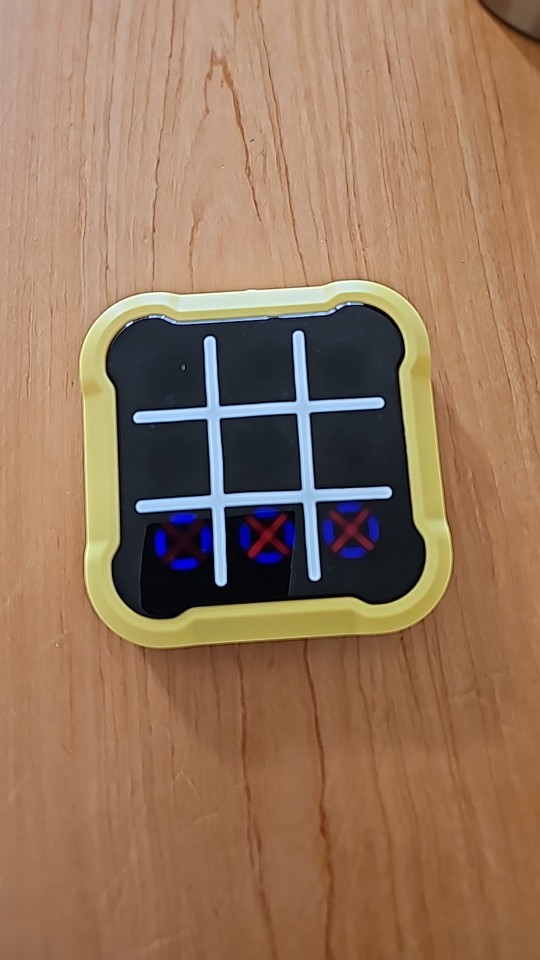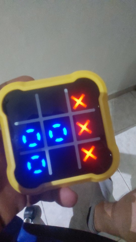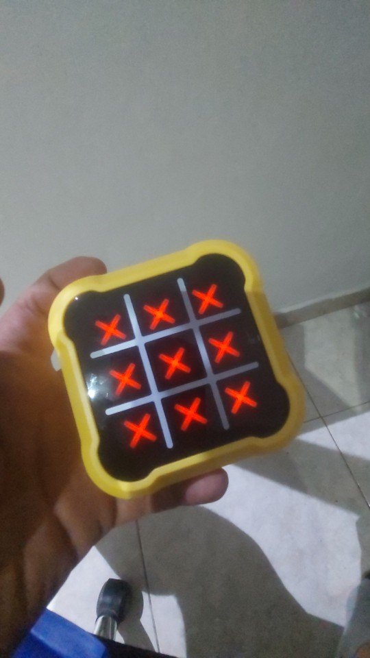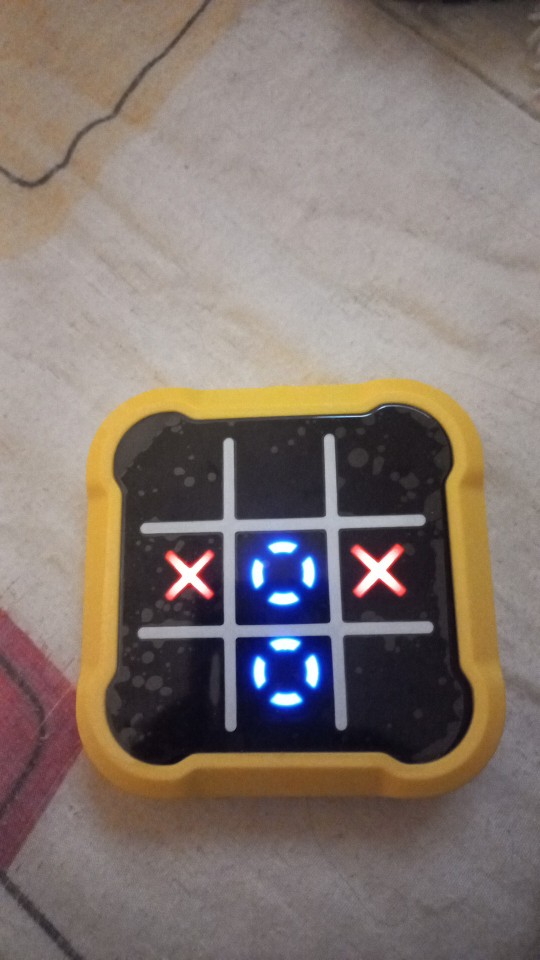 Increíble juego de tres en raya. muy adictivo. Bueno para entrenar la habilidad del juego. pilas no incluidas. juego de memoria también. Jugar con el oponente programado no es fácil. 3 semillas para cada lado, donde el cuarto movimiento en adelante reemplazará la posición existente por una aleatoria.