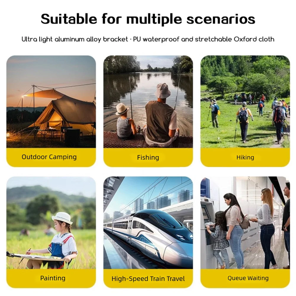 Tela impermeable y resistente al desgarro: el taburete plegable con tela Oxford recubierta de PU es duradero, impermeable y fácil de limpiar.Construido para soportar cualquier entorno exterior