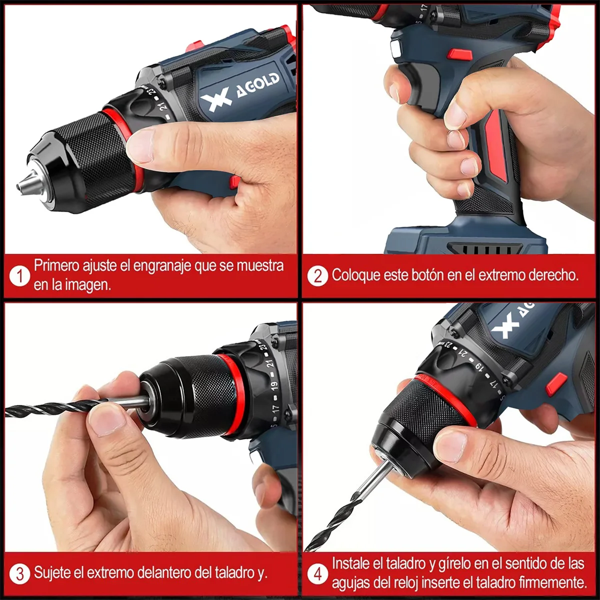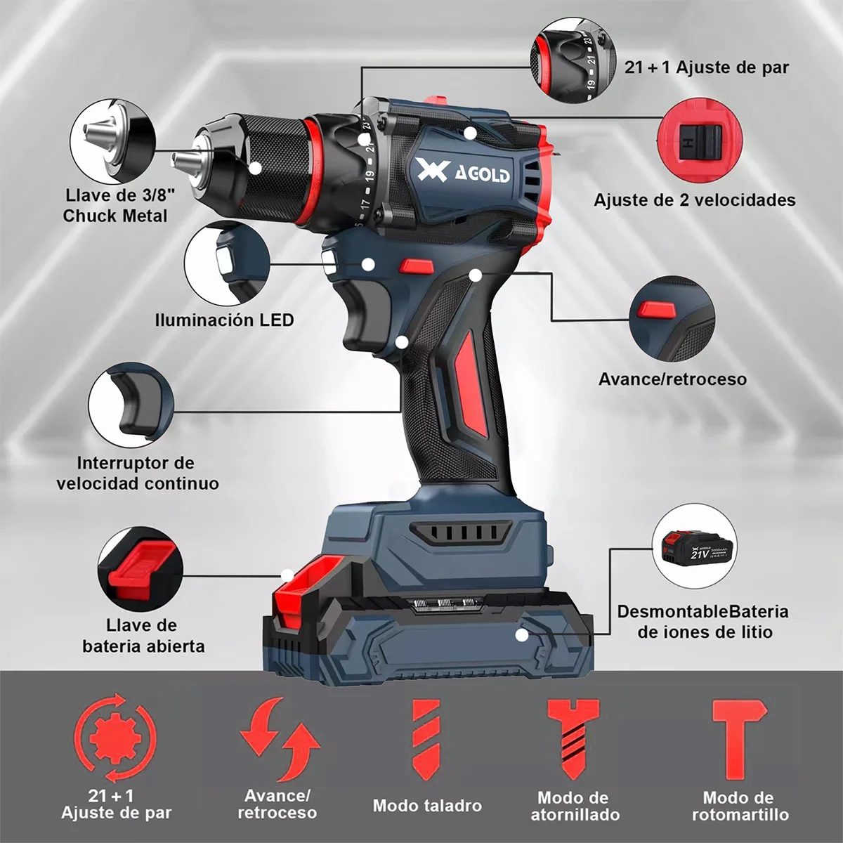 【Rendimiento de trabajo eficiente】: El voltaje del martillo eléctrico del taladro de impacto proporciona una gran potencia y puede realizar fácilmente diversas tareas de trabajo, como perforación, desmontaje, martilleo, etc. Su rotación de alta velocidad y sus potentes funciones de impacto pueden completar el trabajo rápidamente y mejorar la eficiencia del trabajo.