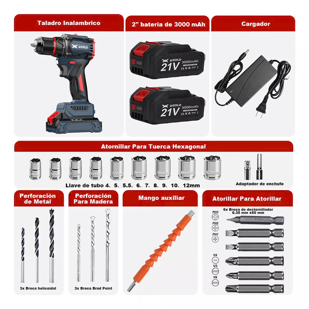 Taladro inalámbrico Desatornillardor Electrico Destornillador Eléctrico Inalámbrico 3 en 1 Herramienta Doméstica Para DIY, Taladro Con Baterías Y Cargador Incluido Herramienta Portátil Para Usar En Casa Y Oficina
