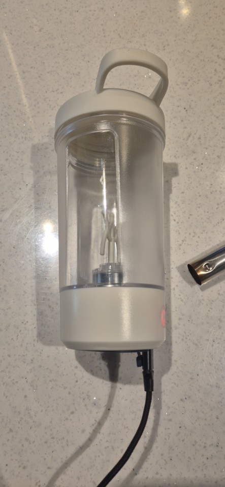 A pesar de las malas reseñas que tenía lo compré, y estoy encantada. Llevo una semana usándolo para batidos de proteina + leche, o también con nestum + leche y va perfecto. Es cierto que para batidos con cosas más duras como plátano o otras frutas no lo recomiendo, pero es de lógica! Lo que gira en el interior es de plástico, no son cuchillas de metal pero por seguridad lo prefiero así. Trae cable tipo C para cargarlo y se puede lavar perfectamente bajo el agua. Además, si lo dejas sobre una mesa mientras bate no se mueve por la mesa, se queda en el sitio haciendo su trabajo.