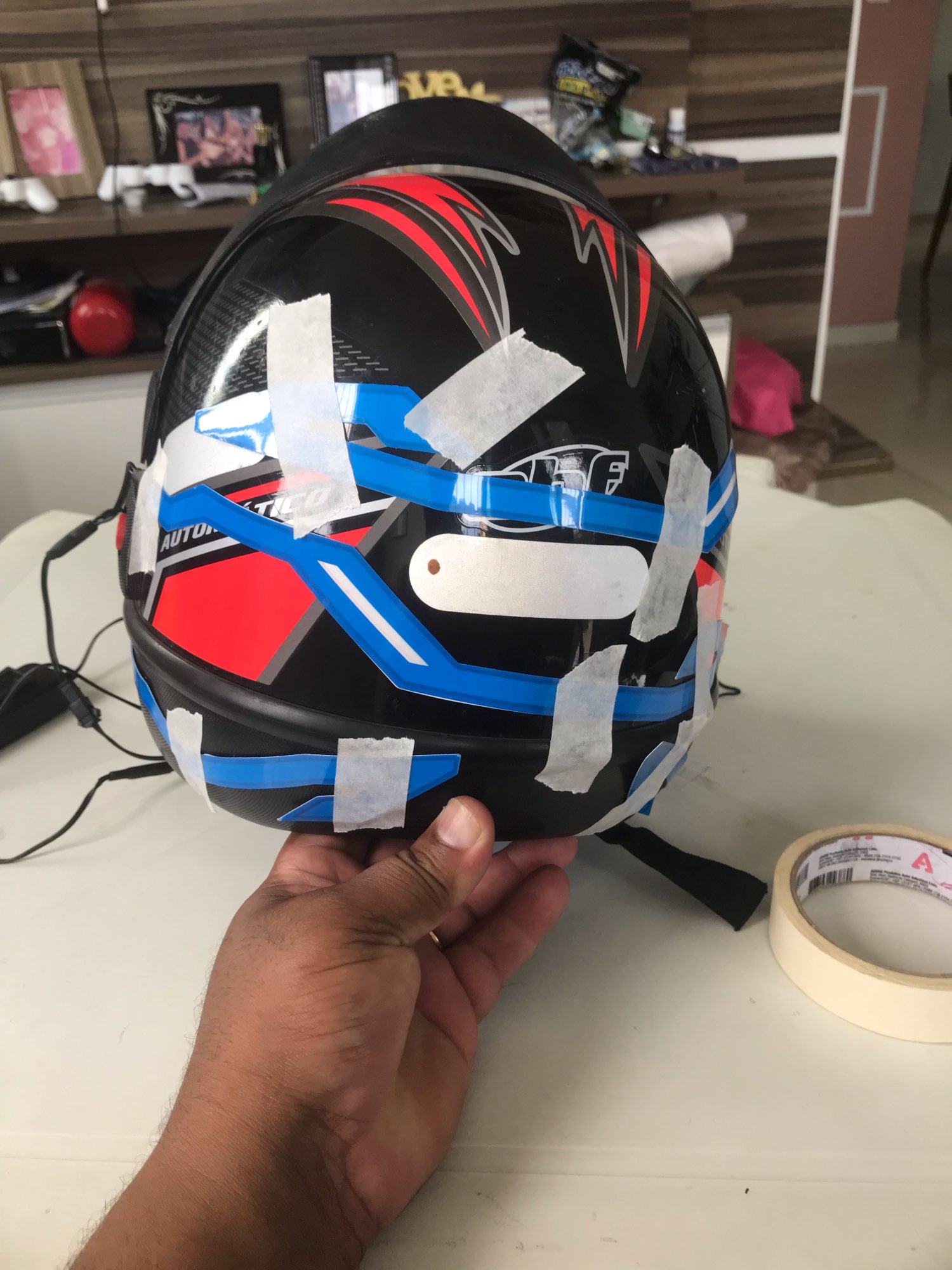No dañe el casco, use pegamento de doble cara, la goma residual después de la rasgadura es menor, algunos restos son limpiables con esencia limpiadora pueden limpiarse.