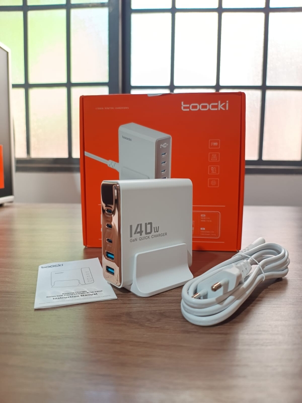 El cargador USB Toocki 140W GaN utiliza la tecnología GaN, lo que lo hace más pequeño y más eficiente que los cargadores tradicionales.
