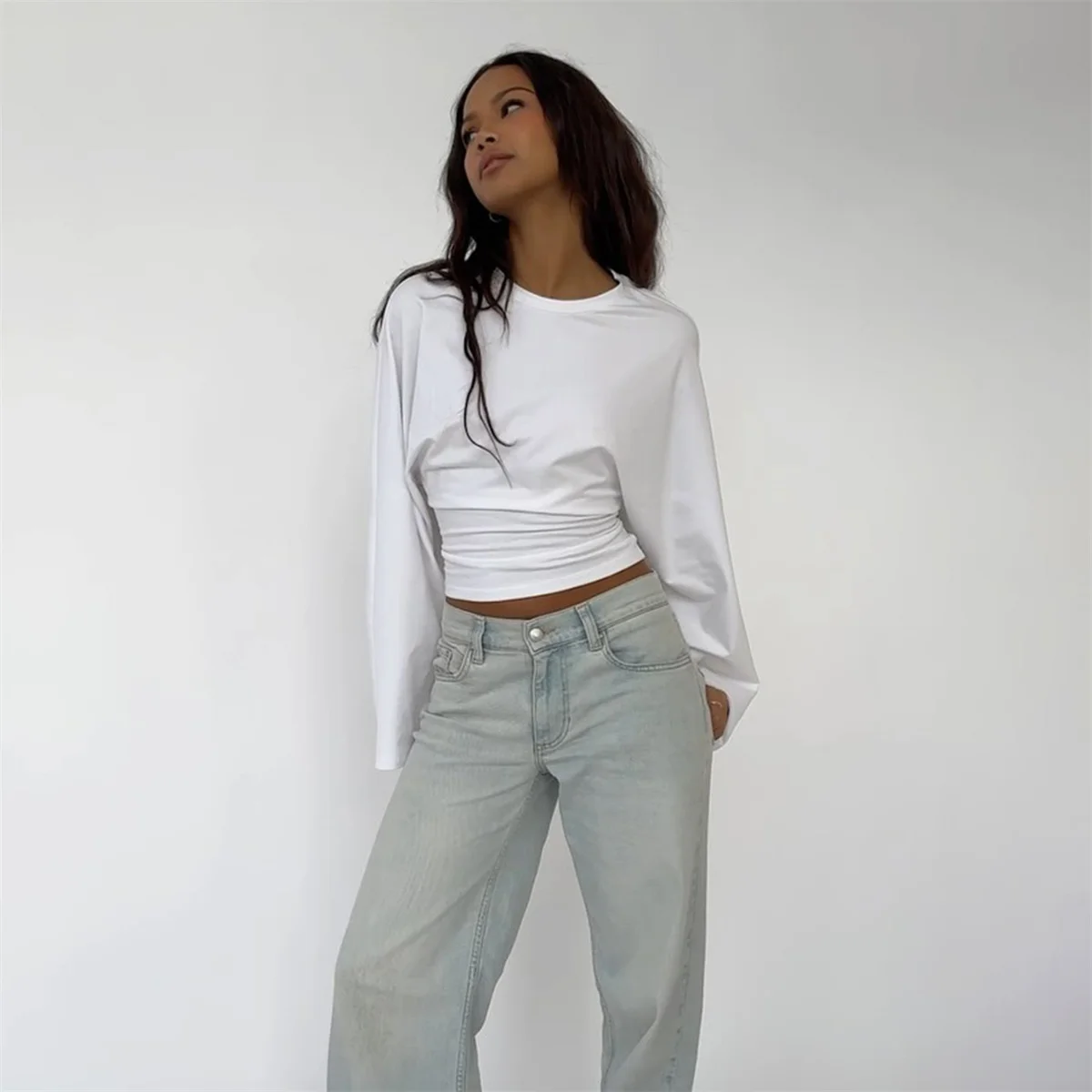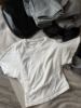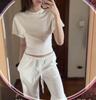 Top corto ajustado con cintura ajustada y hombros descubiertos para mujer, Tops sencillos y versátiles informales para uso diario, Color sólido, cuello redondo, hombros descubiertos