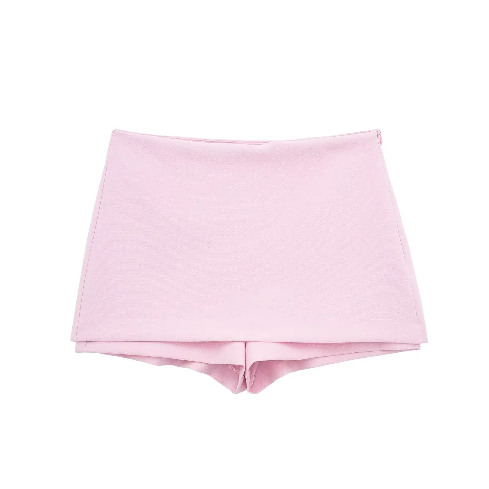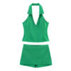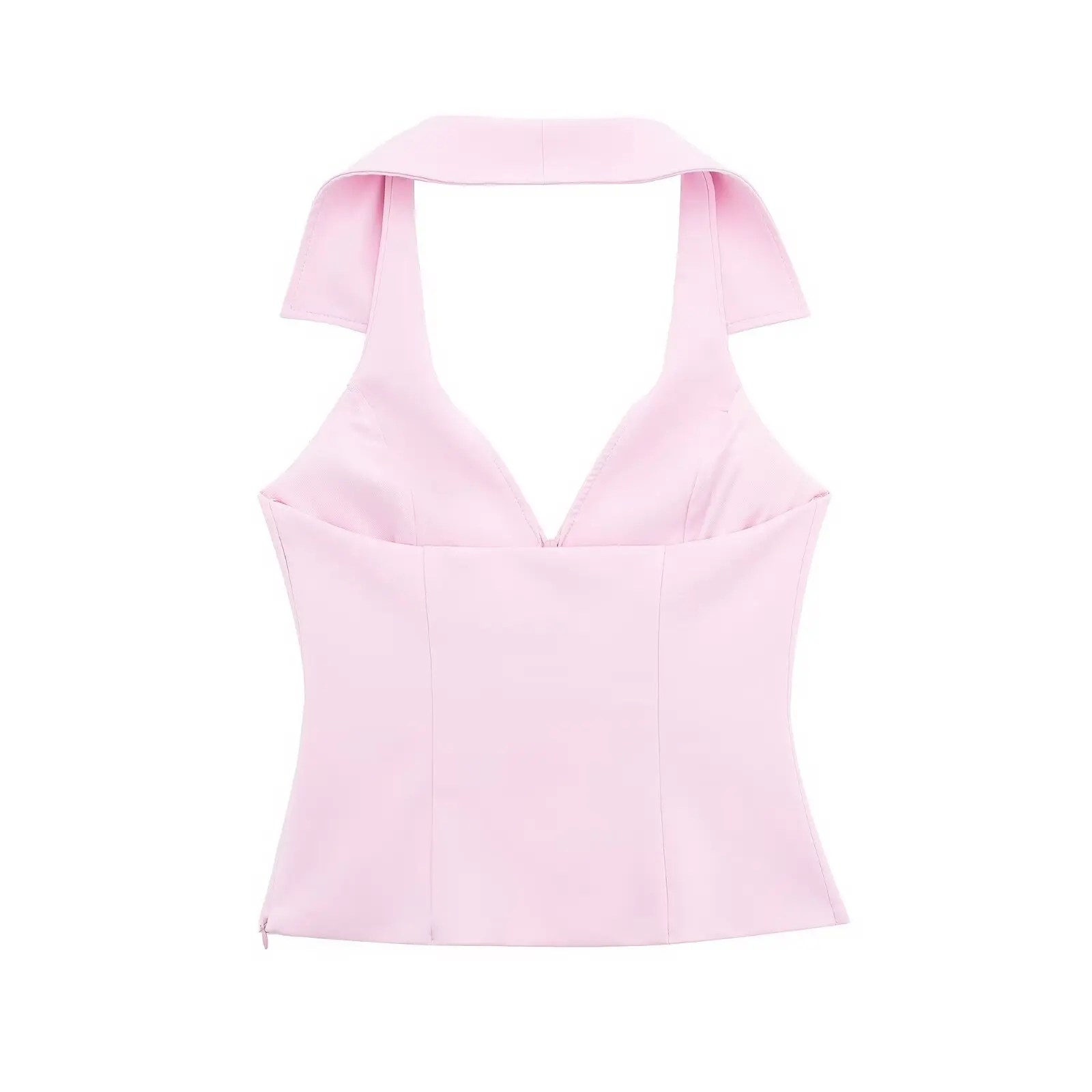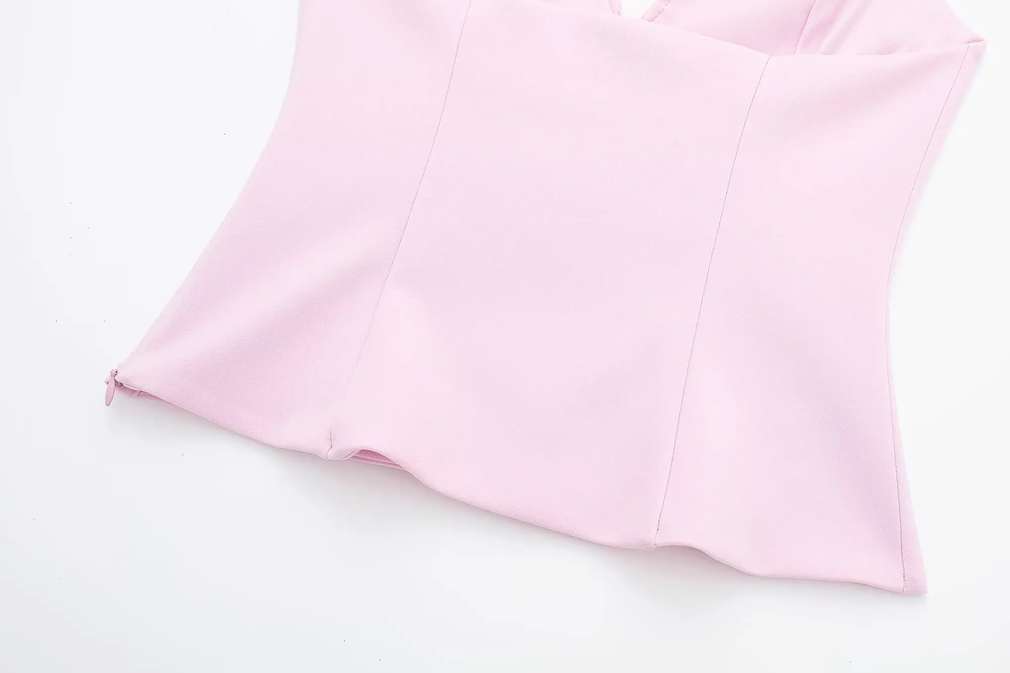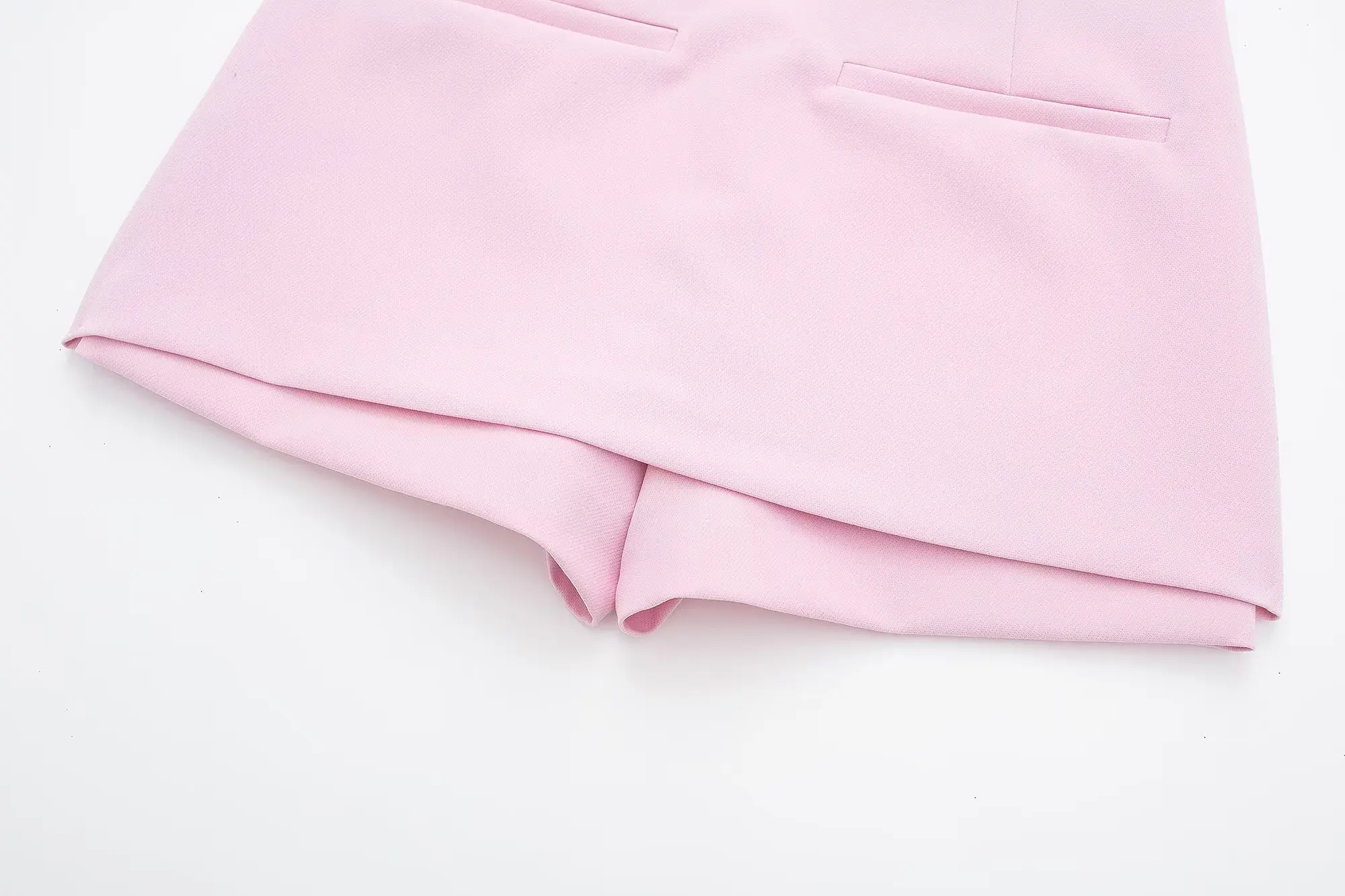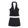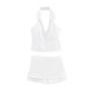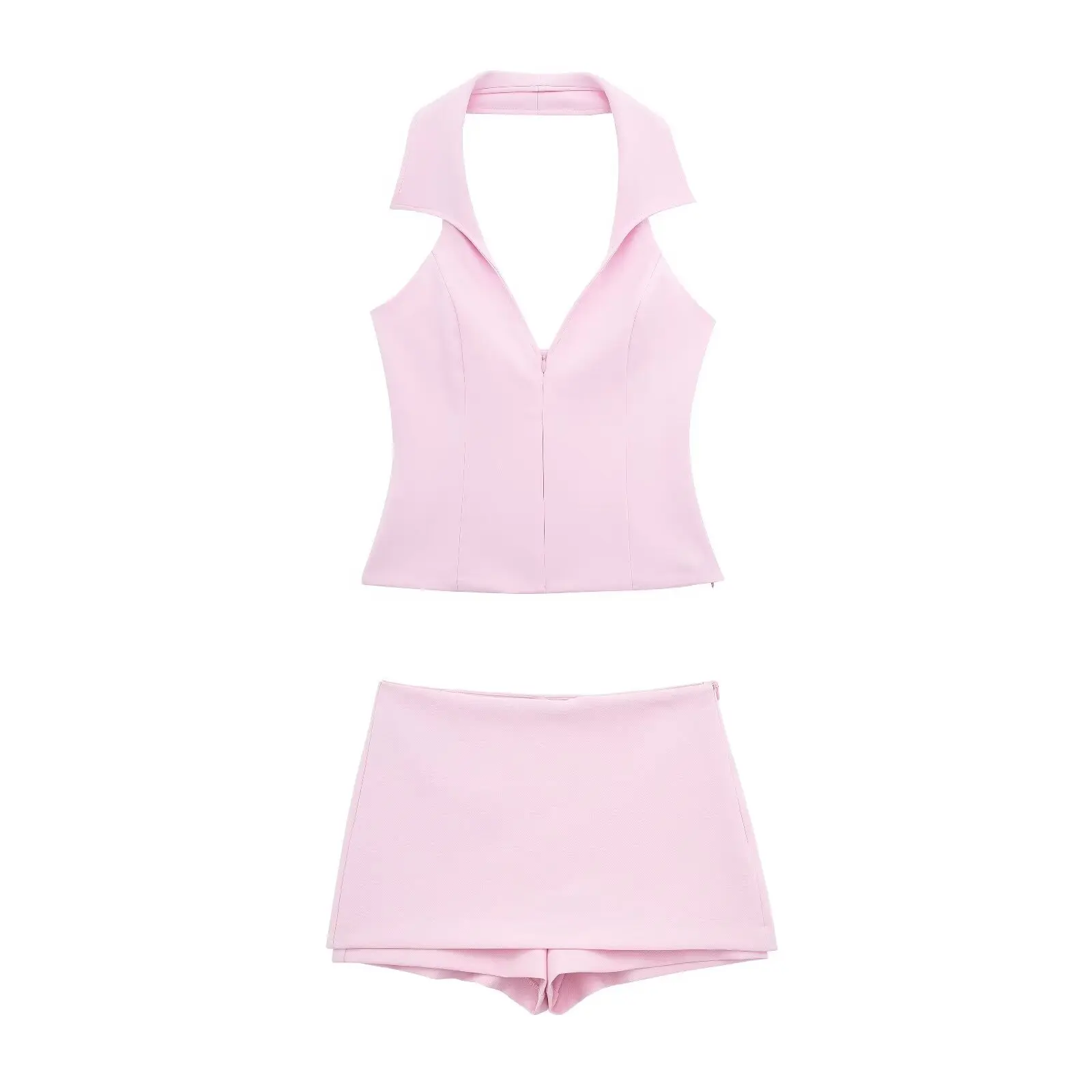 TRAF-Conjunto de 2 piezas de cintura alta para mujer, minifaldas con bolsillo trasero, pantalones cortos, Sexy, cuello en V, sin mangas, Espalda descubierta, Top con cremallera