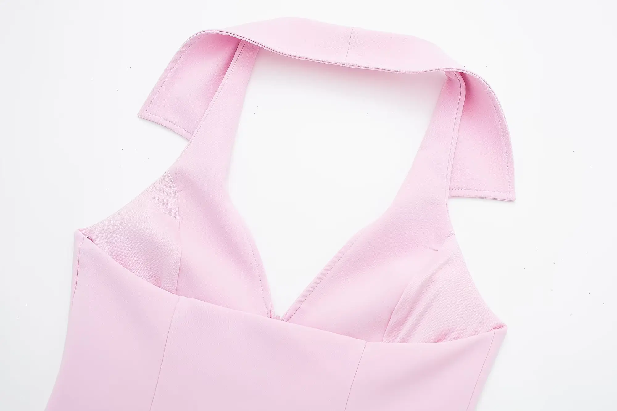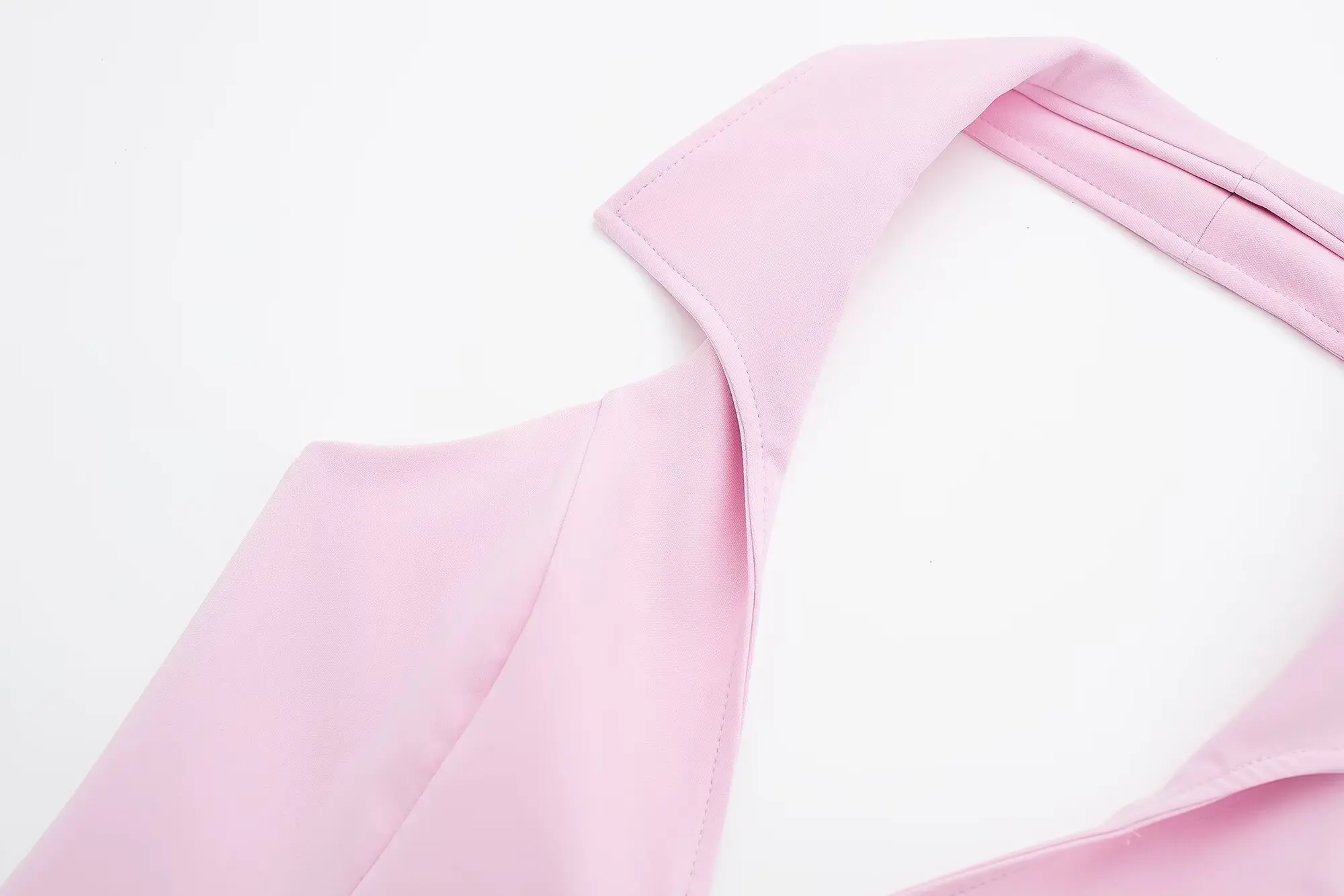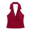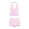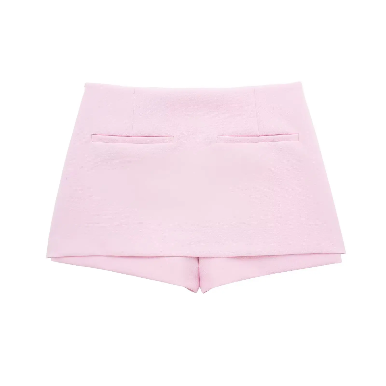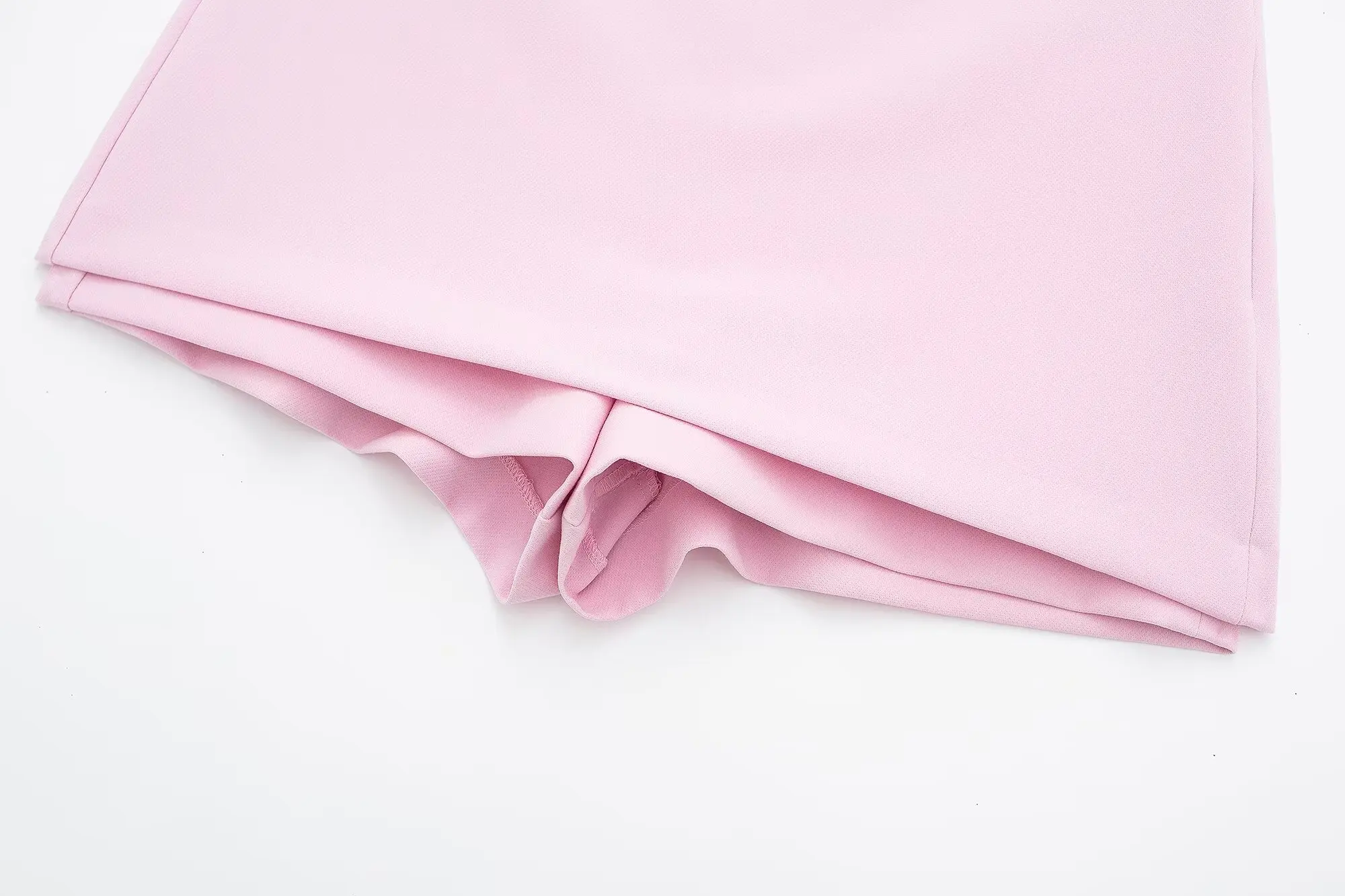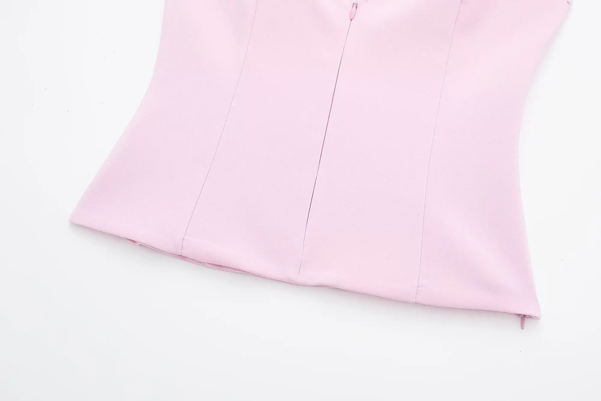 TRAF-Conjunto de 2 piezas de cintura alta para mujer, minifaldas con bolsillo trasero, pantalones cortos, Sexy, cuello en V, sin mangas, Espalda descubierta, Top con cremallera