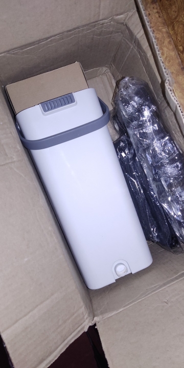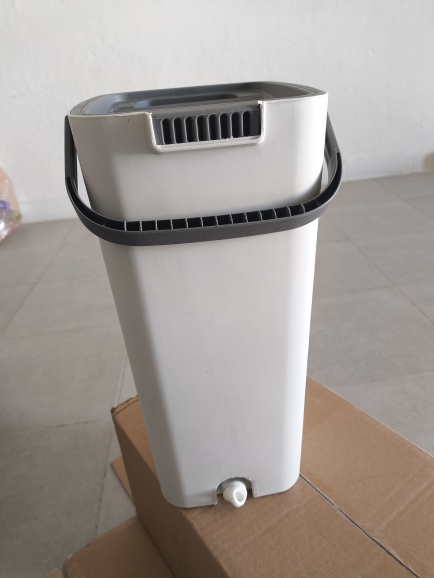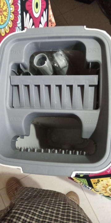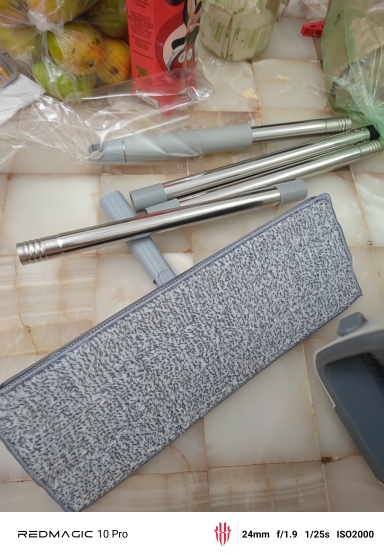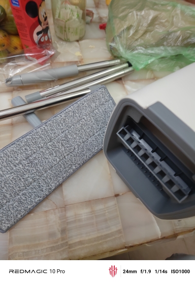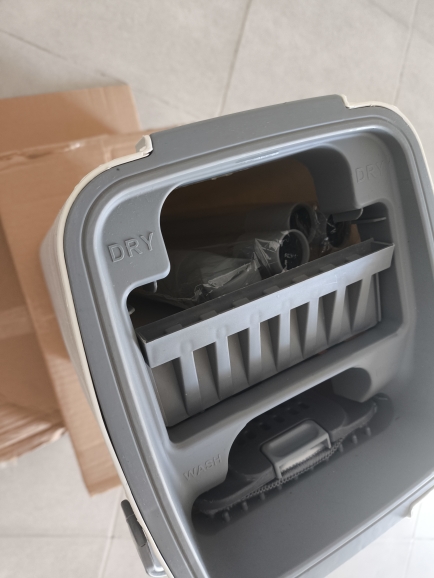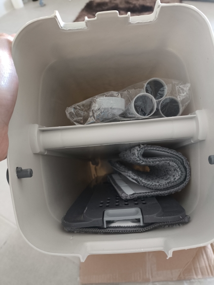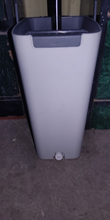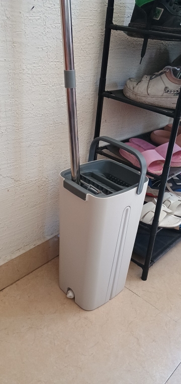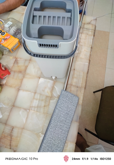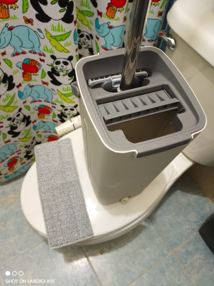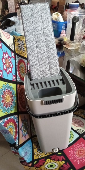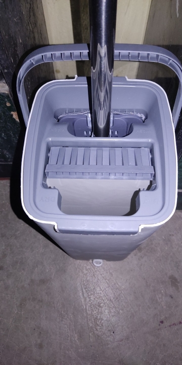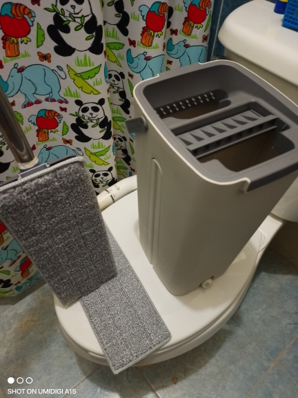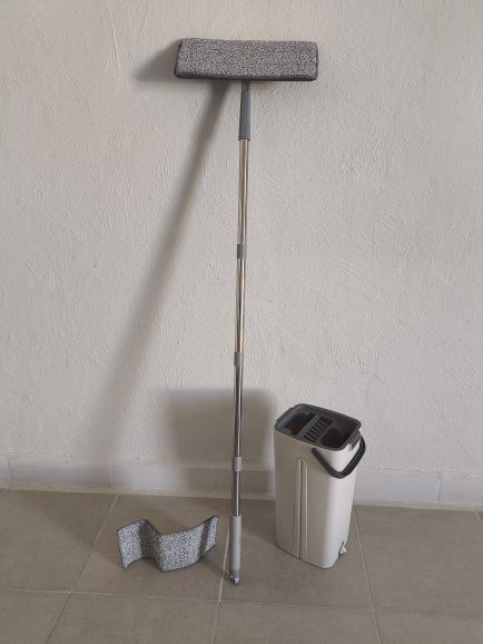 Todavía no lo pruebo, siento que es un poco frágil, pero hay que ver cuánto dura el material, sobre todo las partes de plástico. Vino completo, con dos telas para trapear, el brazo armable y la cubeta de dos compartimientos.