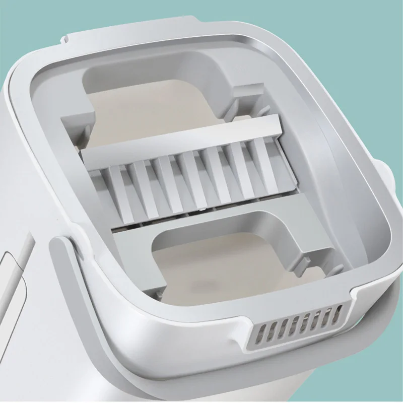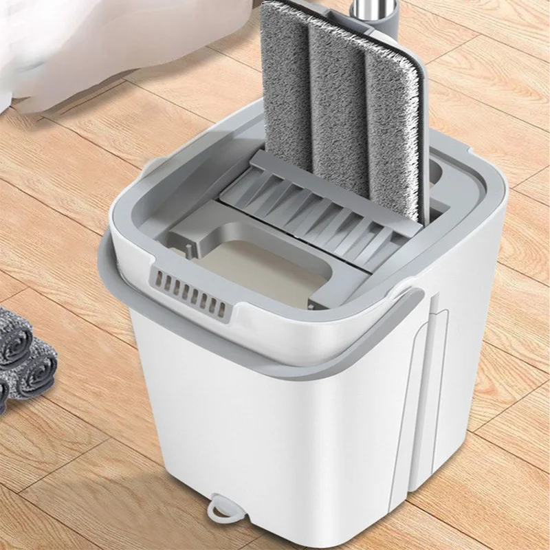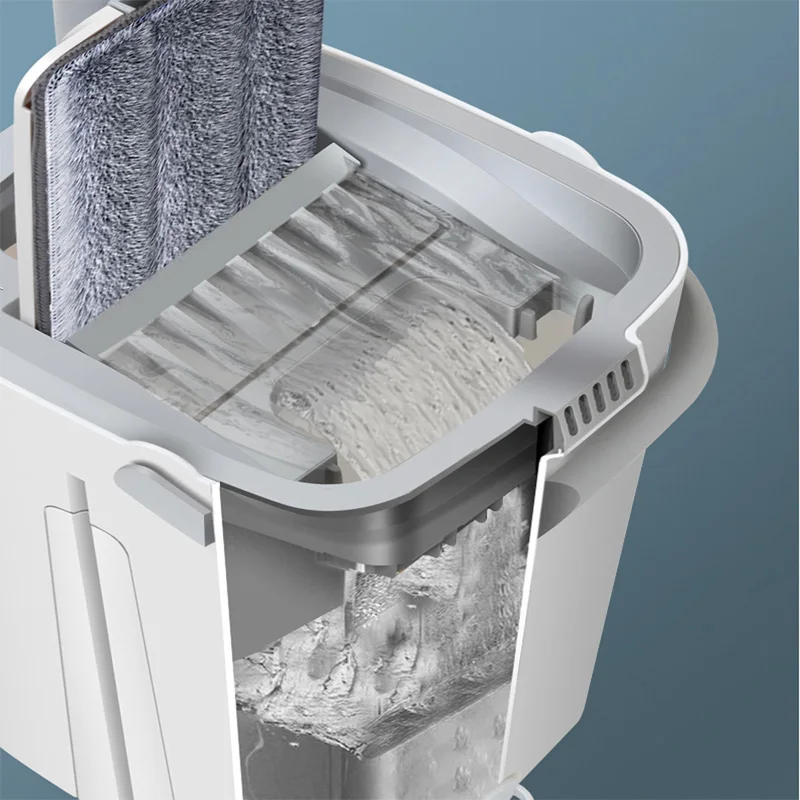 Herramienta de limpieza del hogar: trapeador y cubo con juego de escurridor, 2 cámaras de cubo de fregona, lavar y secar, raspa la suciedad en la cámara de lavado, exprime el agua en la cámara seca, sin limpiar las manos.