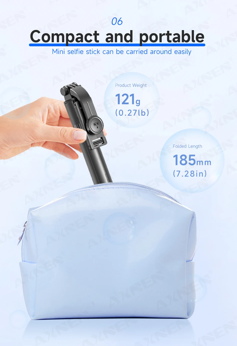 Ligero: Sólo 121 g, fácil de llevar en un bolso o bolsillo.