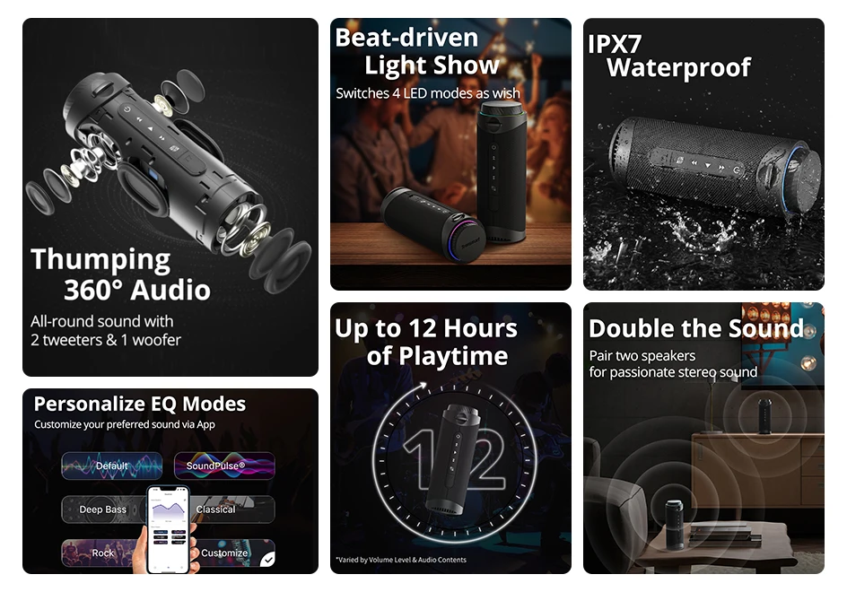 4. Vibrant LED Modes & IPX7 Waterproof.