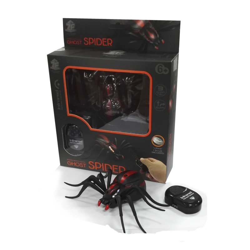 Fuente de alimentación: 6 pilas de botón para araña y mando a distancia (incluidas) y abre el interruptor de encendido/apagado en su cuerpo y coloca las manos en el transmisor de mando a distancia.