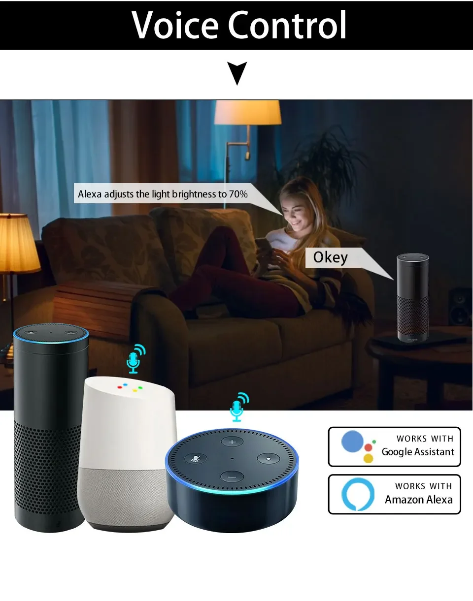 1. Control de voz: control de voz fácil de todas las bombillas inteligentes a través de la integración con Amazon Alexa Echo o Google Home Assistant o Yandex Alice.