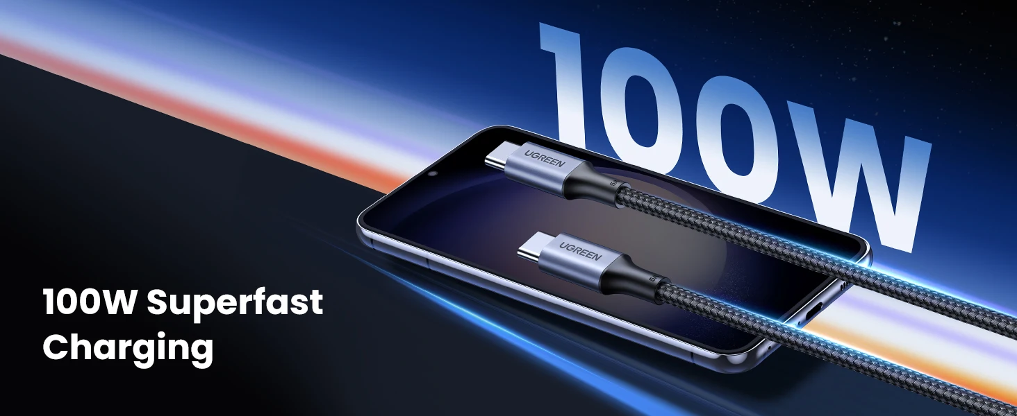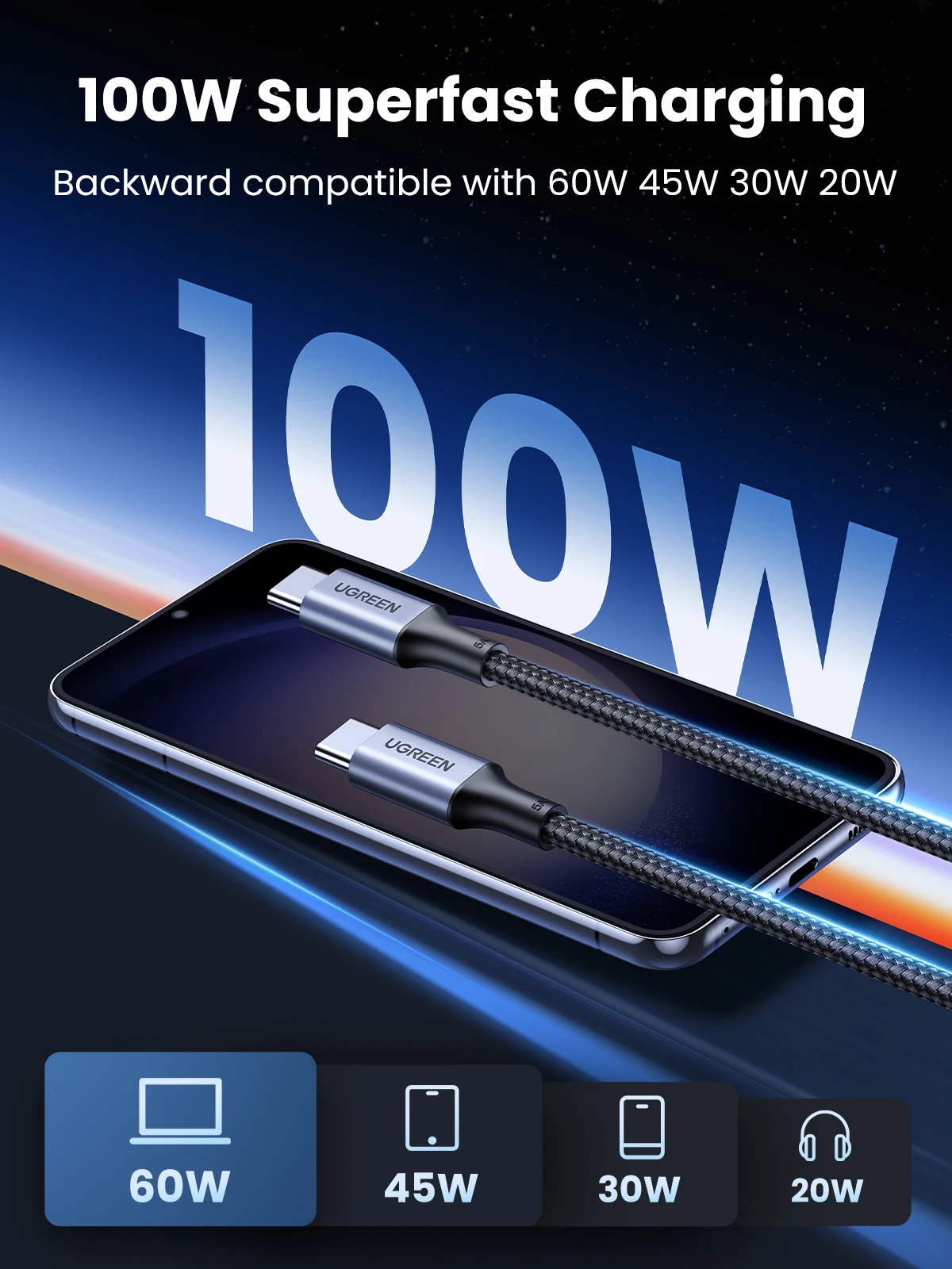 UGREEN 100W USB tipo C a USB C Cable para Samsung S25 iPhone 17 16 Cable de cargador rápido 5A para MacBook Cable USB de carga rápida 4,0