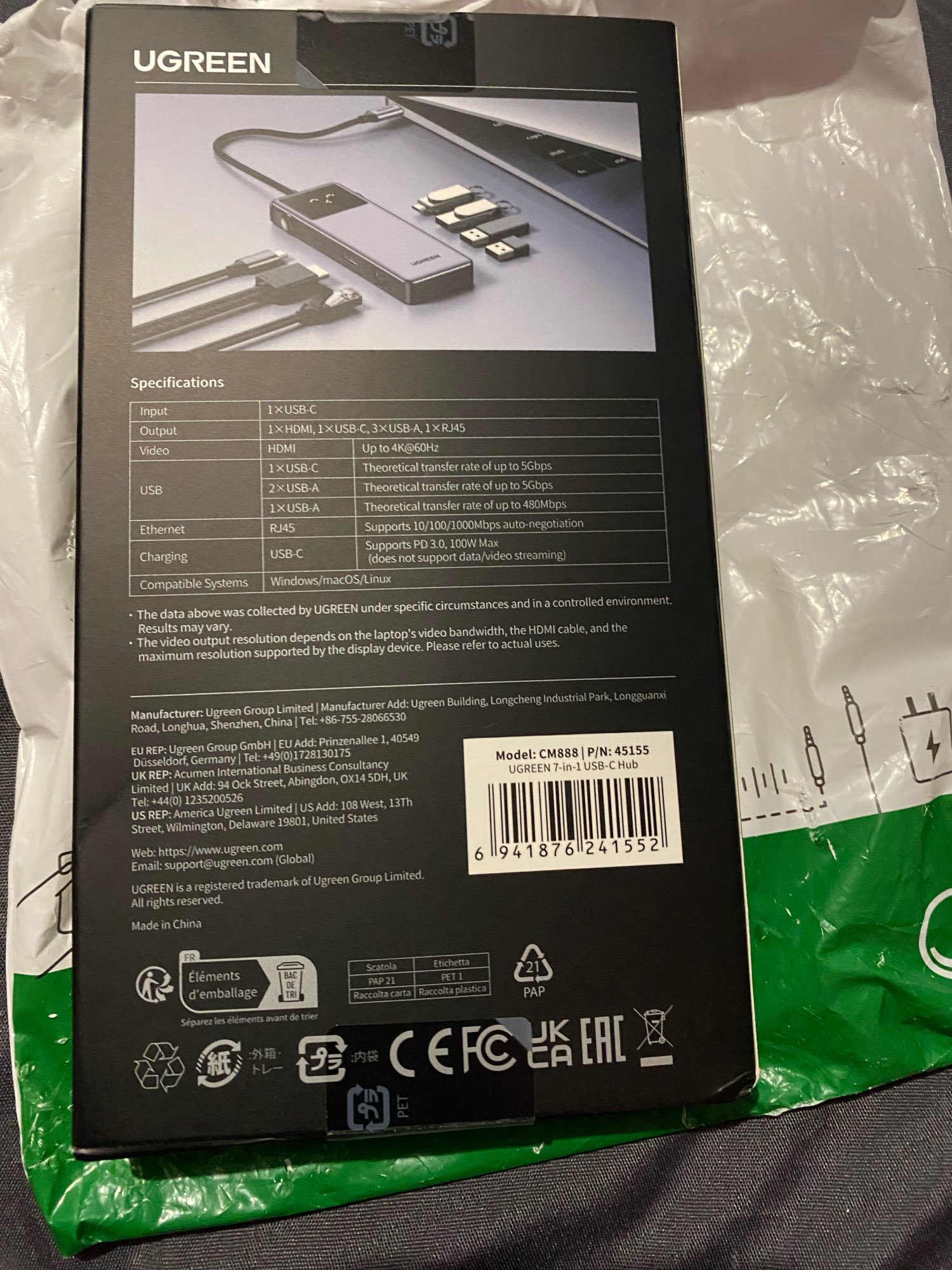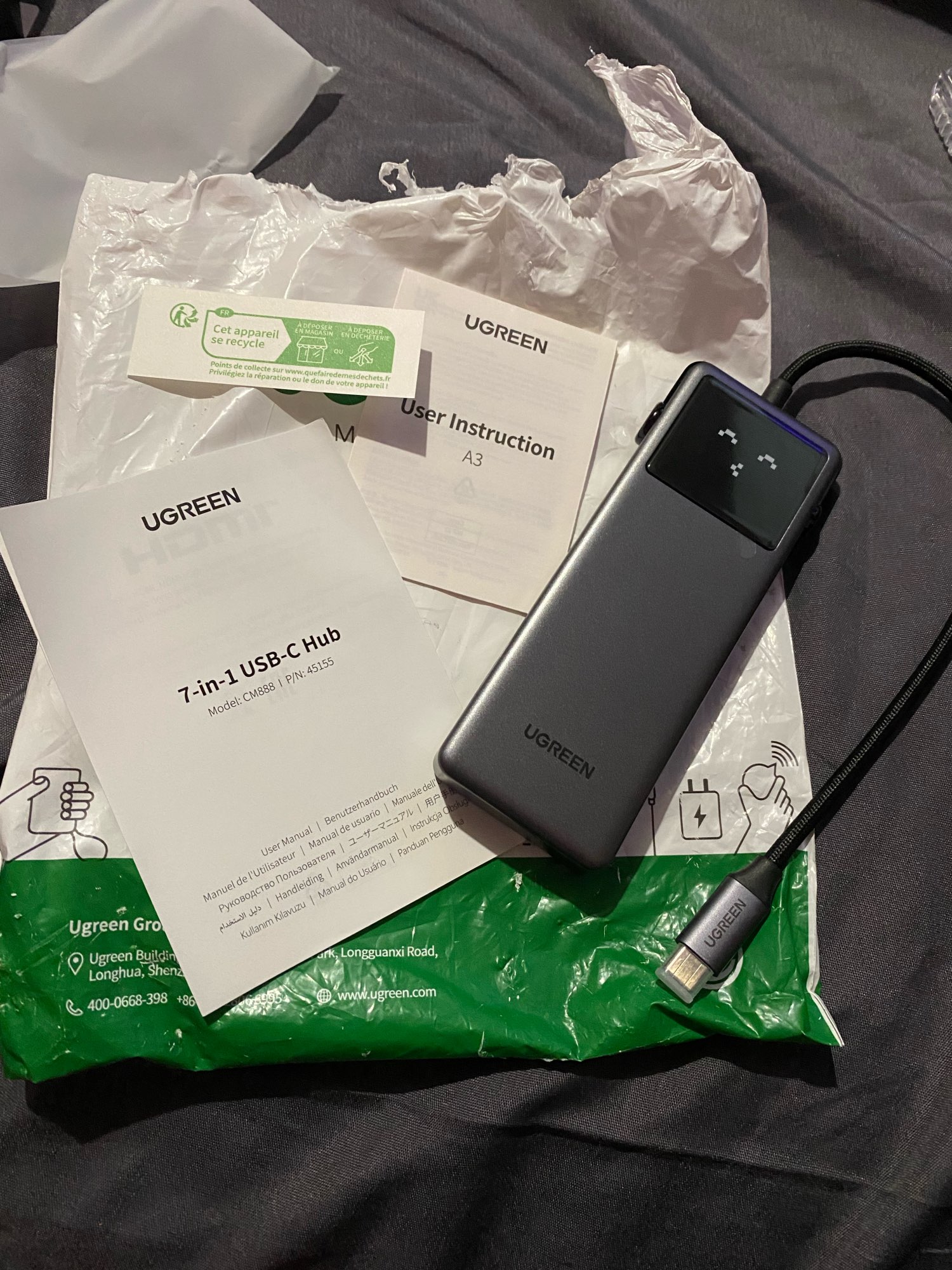 Hub de excelente calidad, es de material plastico, funciona muy bien, 1 semana en envio hasta chile.