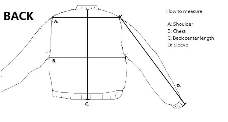 -Por favor, asegúrese de que el pecho de la chaqueta es al menos 28-30cm (11 pulgadas) más grande que su pecho. Gracias. 🙂