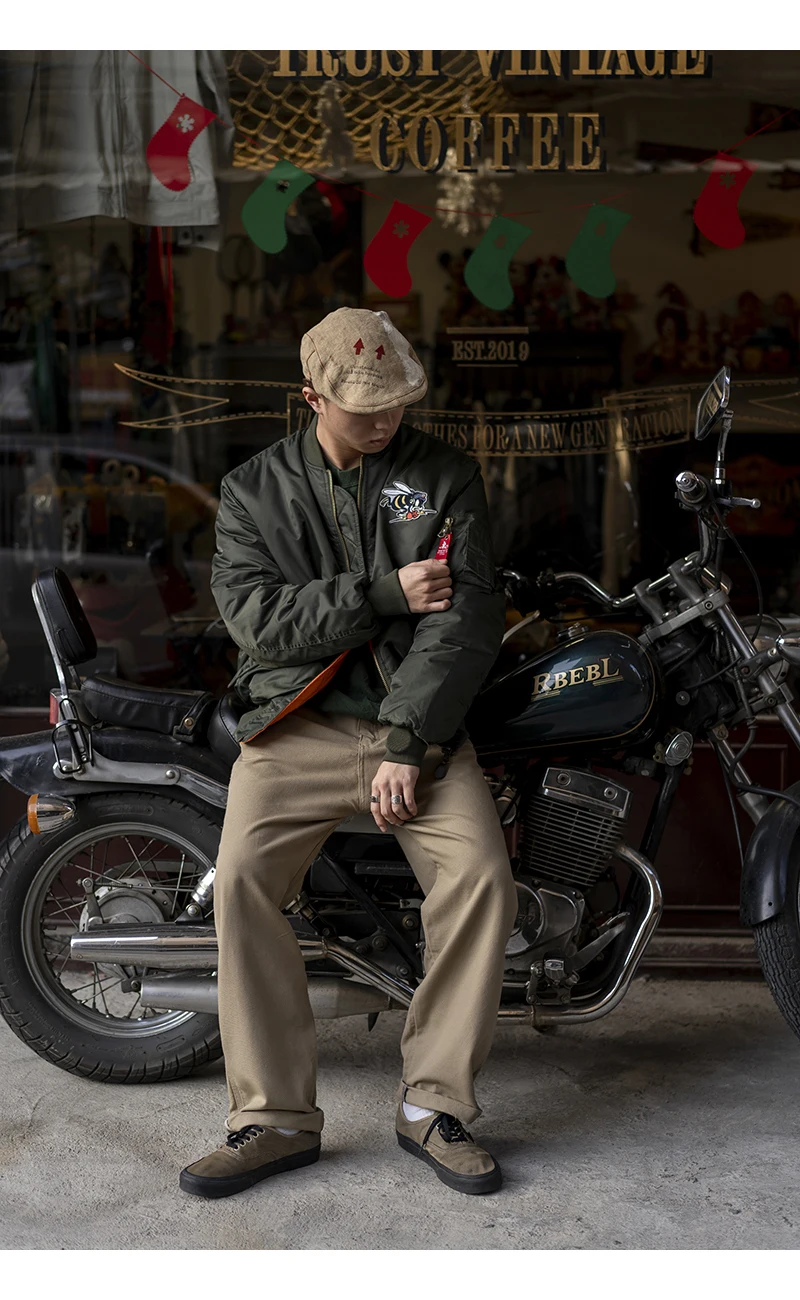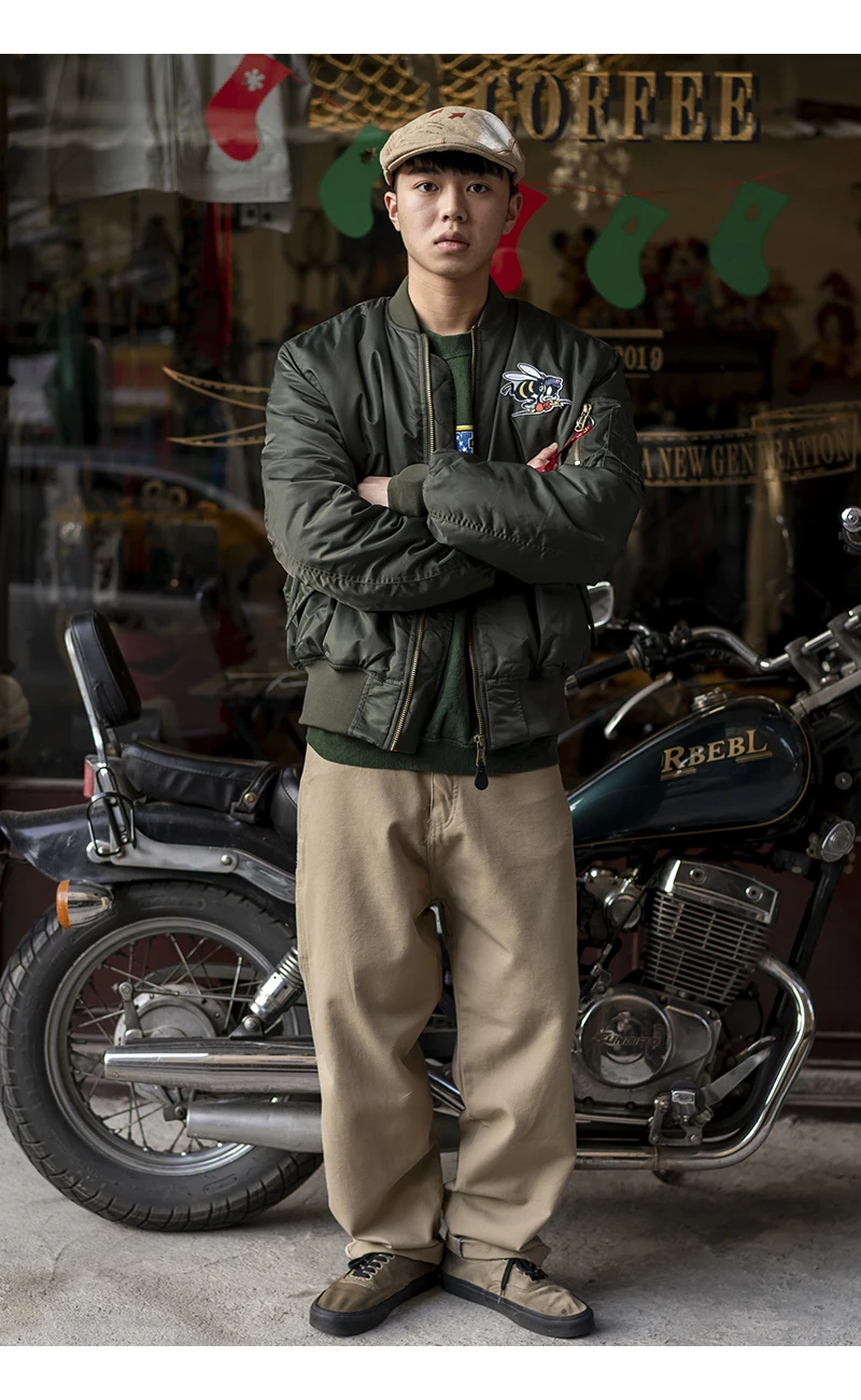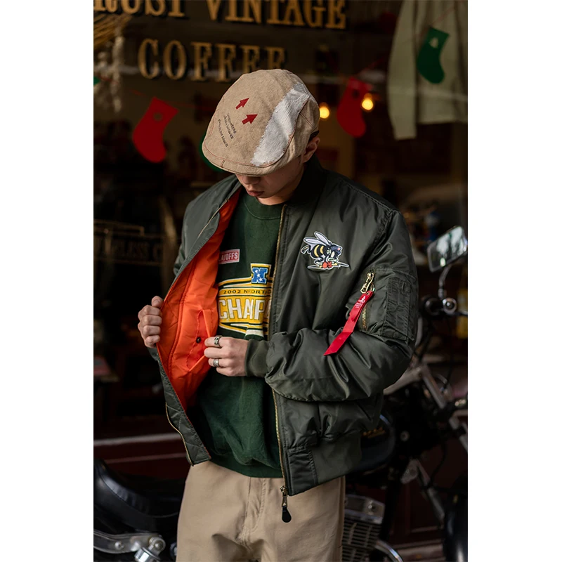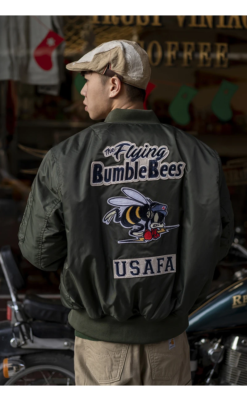 USAFA-Chaqueta Bomber bordada con parche de abejorros voladores para hombre, abrigo de vuelo de piloto de la Fuerza Aérea, ropa de abrigo acolchada cálida, WW2, invierno