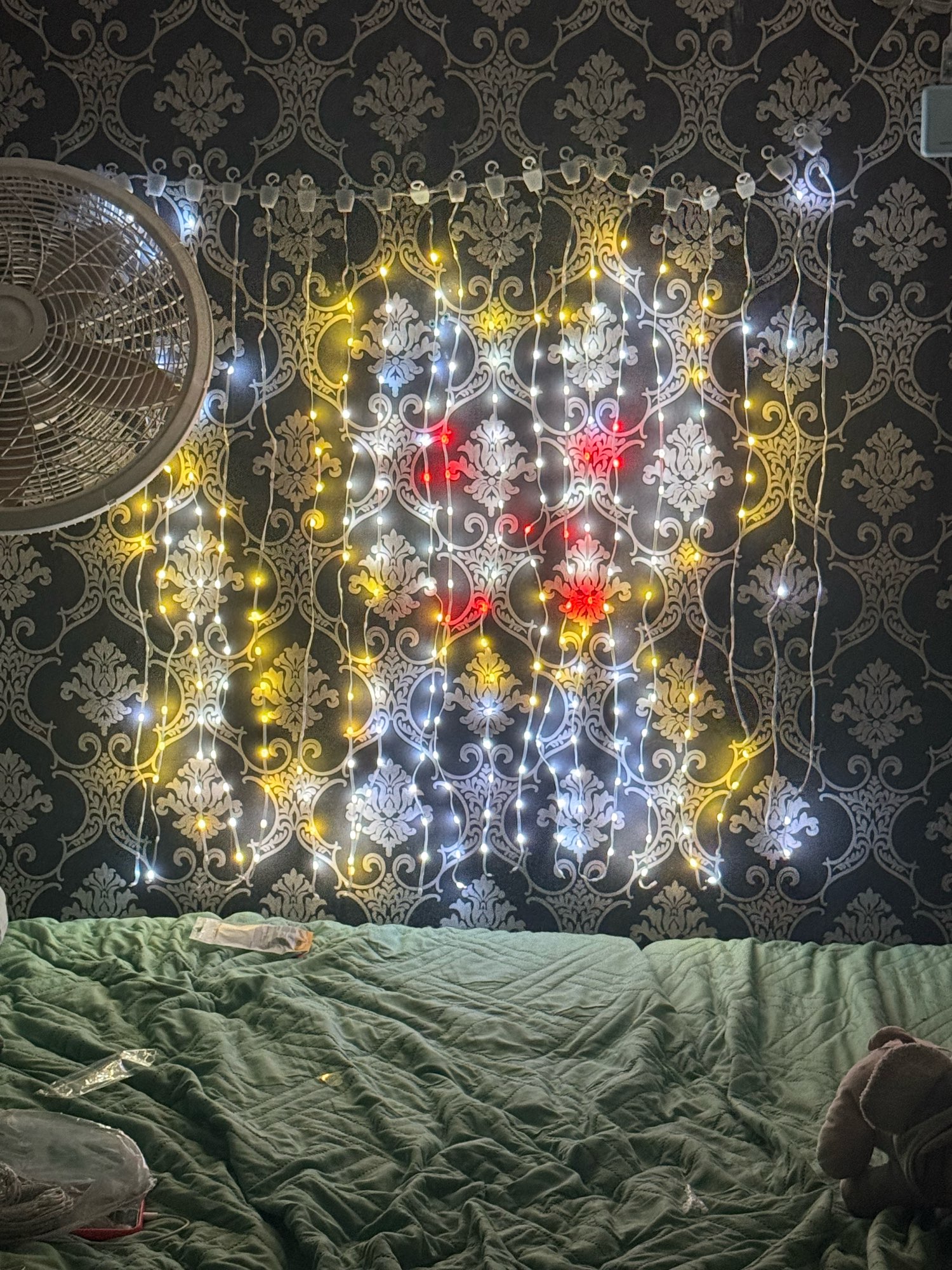 Las luces de cortina estéticas tienen 400 cuentas LED en forma de lágrima, de tamaño 2 x 2 M o 3 x 3 M.La tecnología de fabricación se ha mejorado con material resistente e irrompible, lo que permite que uno de los LED deje de funcionar sin afectar toda la luz LED.