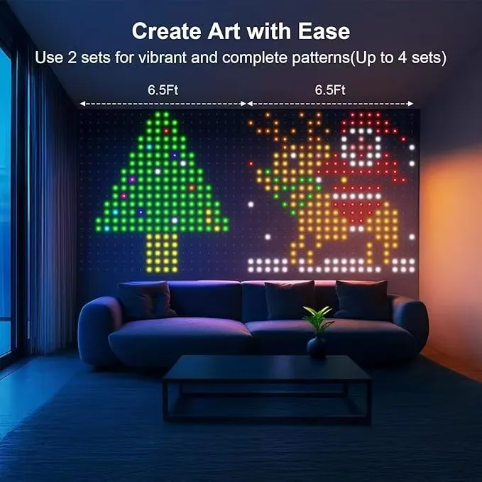 Permitiendo mayores densidades de píxeles y añadiendo más dimensiones a la pantalla de iluminación.Puedes usar tu imaginación para dibujar gráficos usando diferentes colores, ajustar el brillo y la velocidad y guardarlos para uso a largo plazo, esta también es una oportunidad para mostrar los tuyos.Por ejemplo: bandera, lemas, lindos patrones, etc.(Nota: la función GIF solo se aplica a una colección, la velocidad no admite el ajuste)