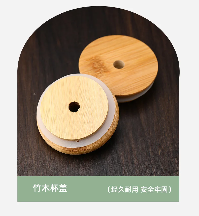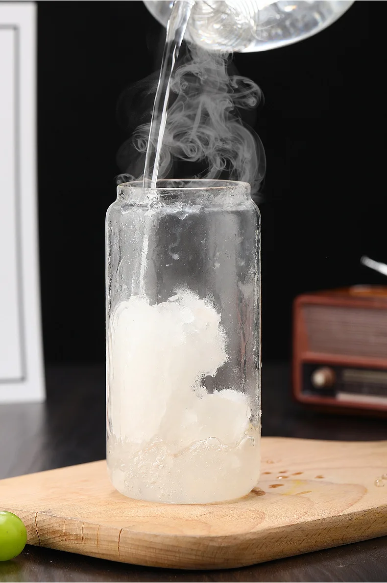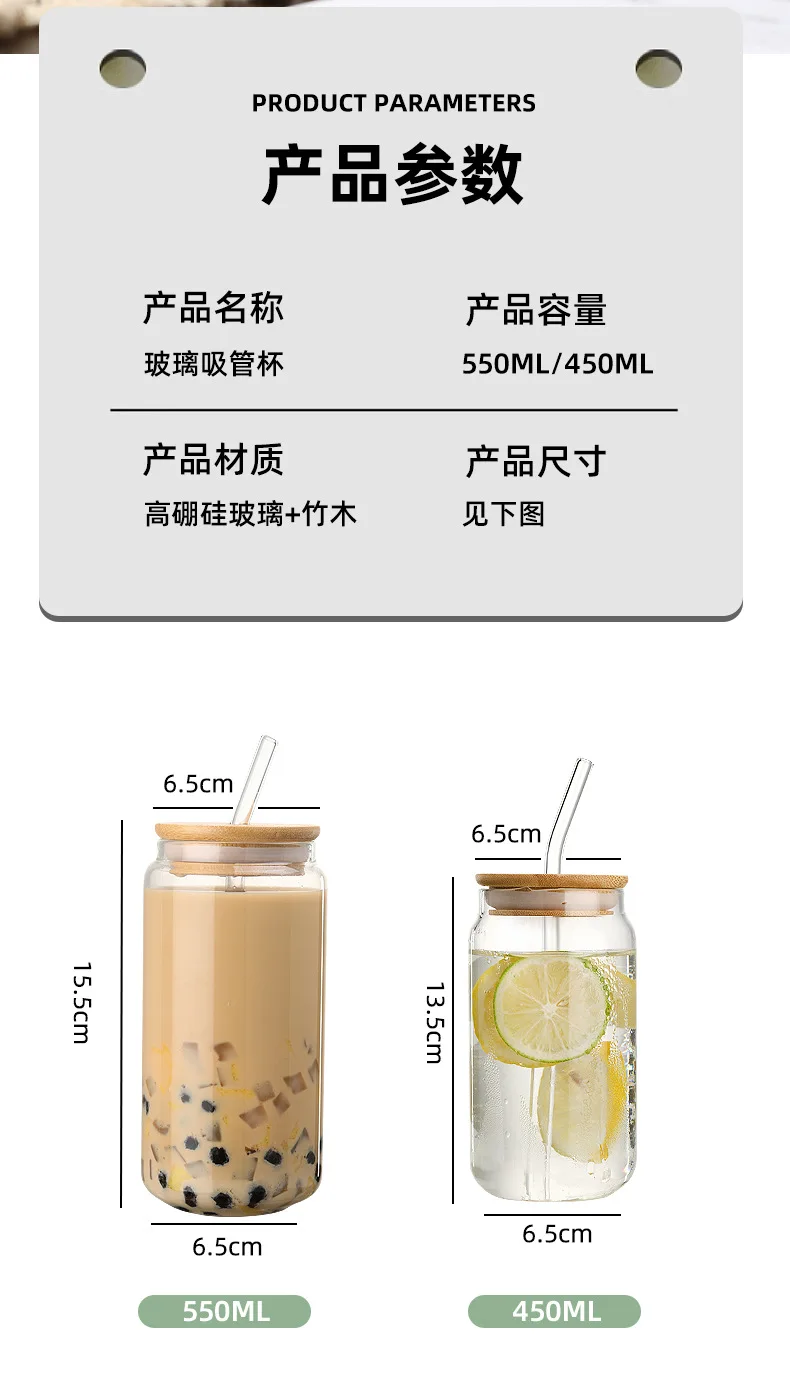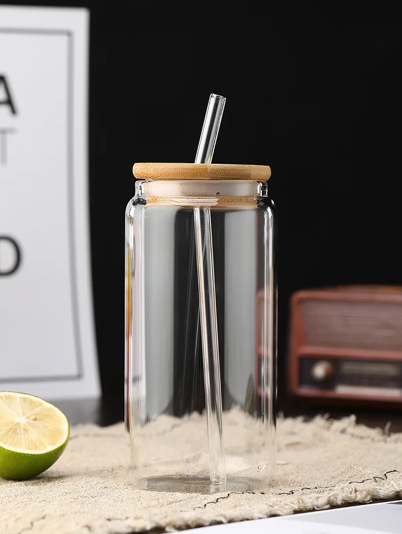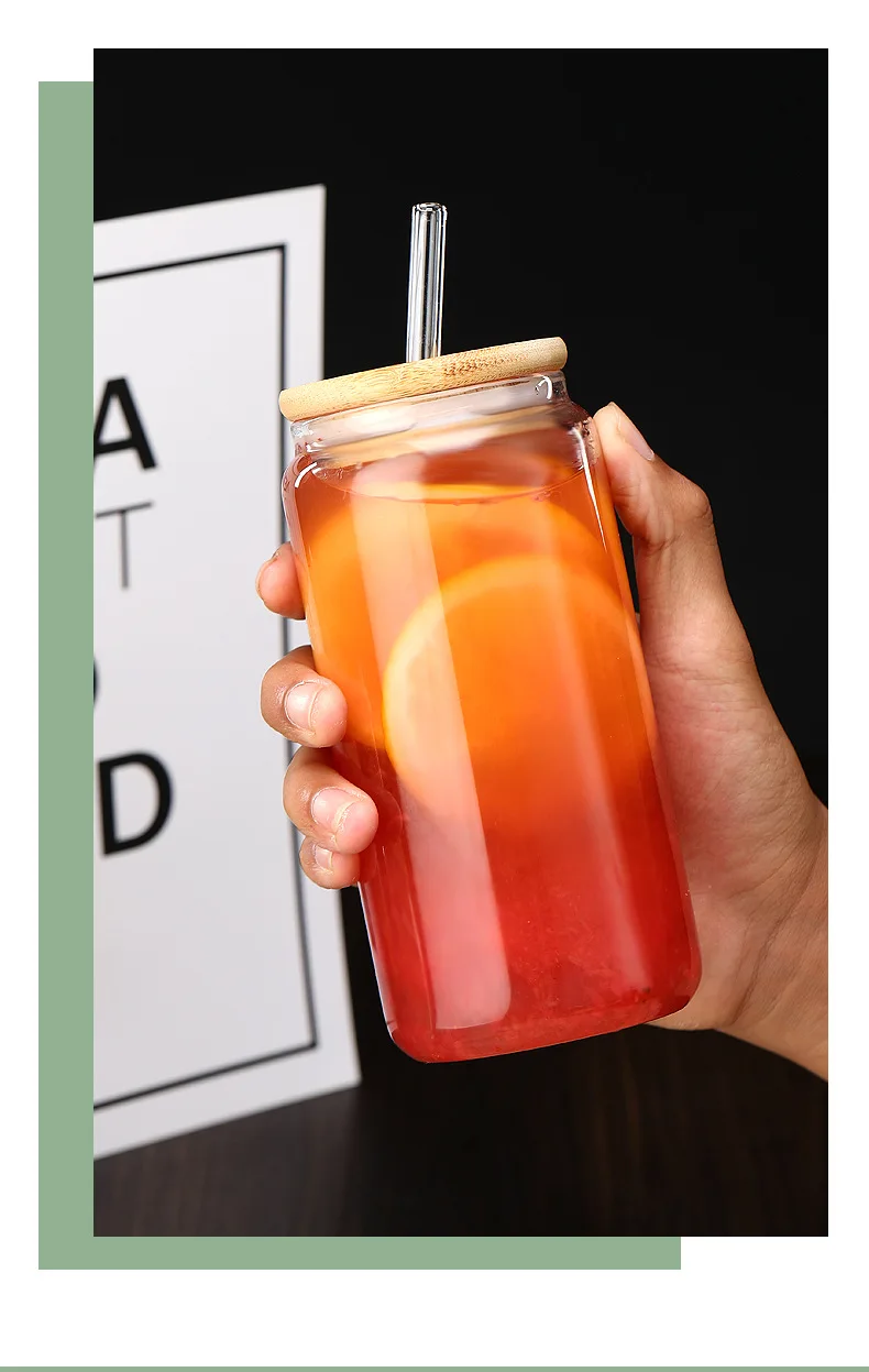 Vasos de vidrio de 450ml/550ml con tapas de bambú y pajita, 1 tarros de albañil, taza de café, lata de cerveza en forma para cóctel, leche, jugo, regalo de Cola