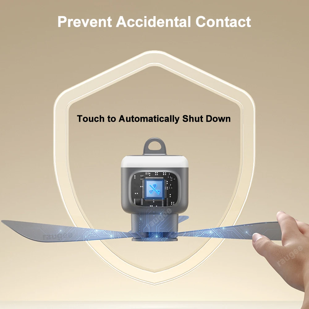 【Seguridad】En el caso de la función de ventilador, dejará de girar automáticamente después de una colisión, protegiéndole eficazmente de lesiones accidentales en el pequeño espacio de la tienda.