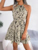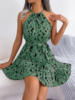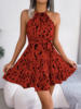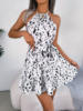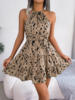 Vestido corto con estampado de leopardo para mujer, minivestido Sexy con cuello Halter y volantes para primavera y verano