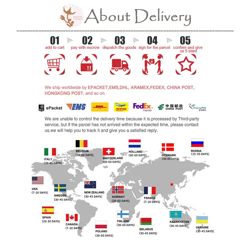 Los paquetes desde nuestro almacén en China se enviarán por ePacket o EMS, dependiendo del peso y tamaño del producto. Los paquetes enviados desde nuestro almacén en los Estados Unidos se envían a través de USPS.