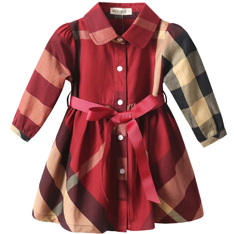 Vestido de algodón a cuadros para niña, ropa de fiesta de princesa de manga larga, estilo europeo de 1 a 6 años, 2023