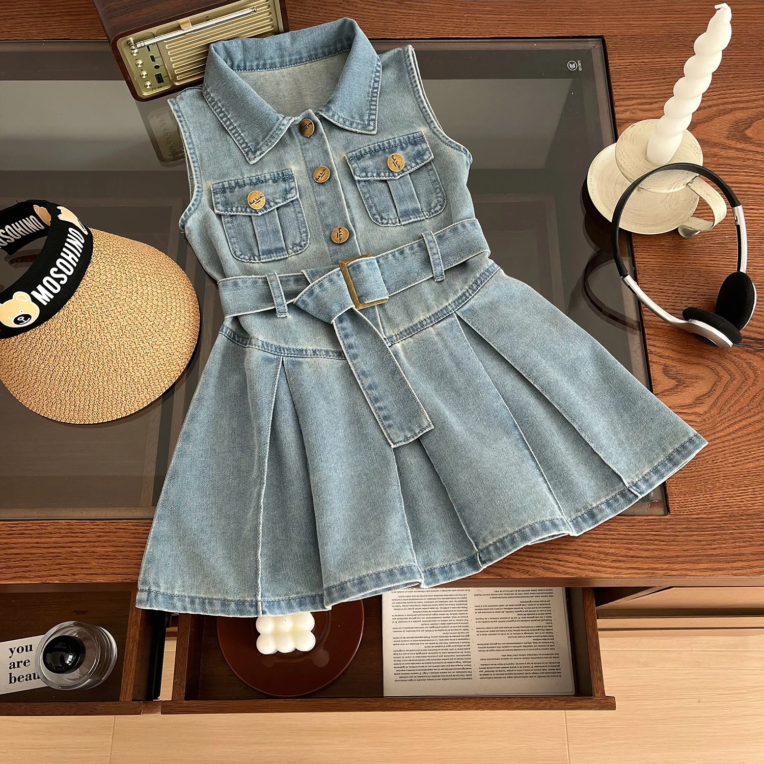 Vestido de mezclilla para niñas, chaleco sin mangas, moda coreana, informal, de verano, 2-9 años