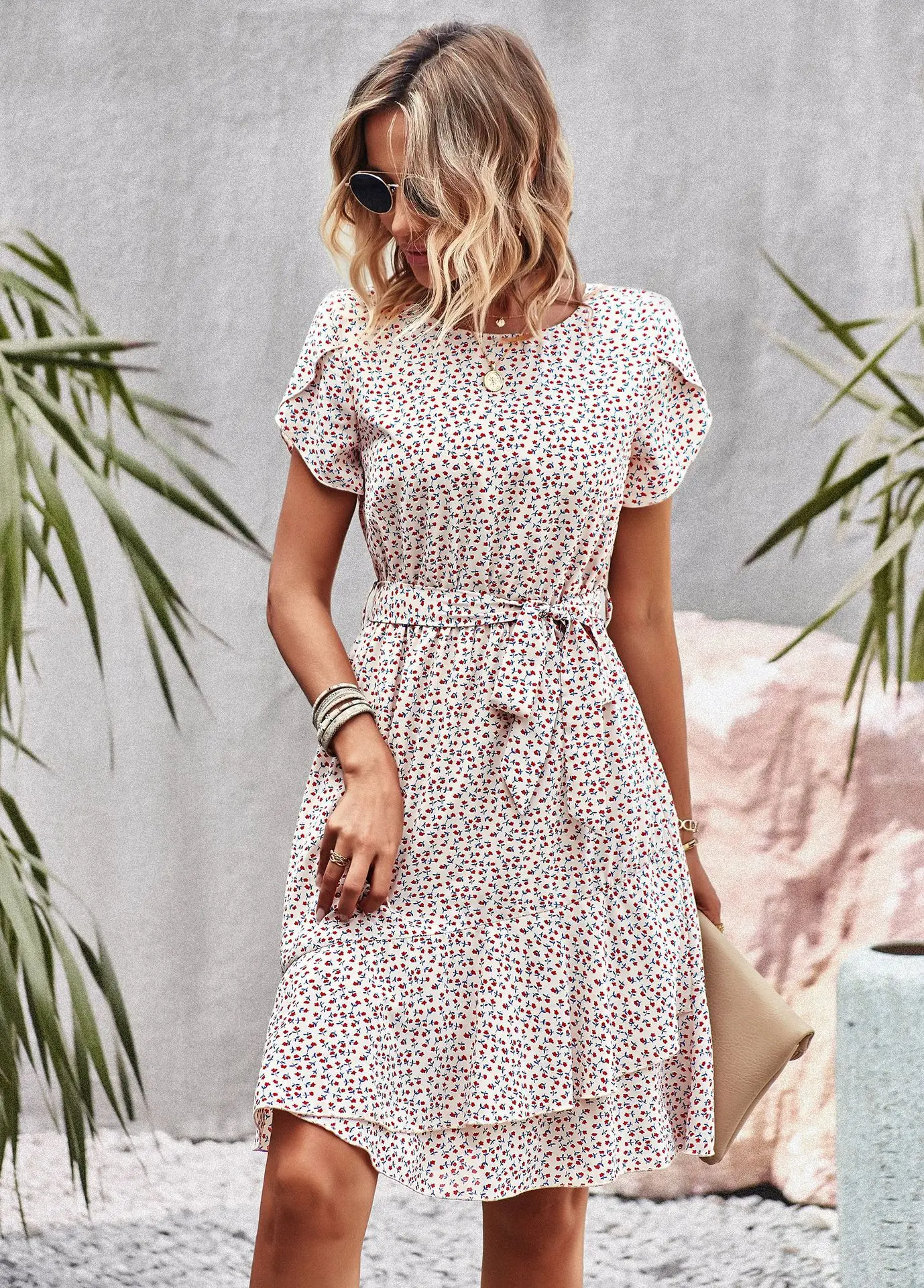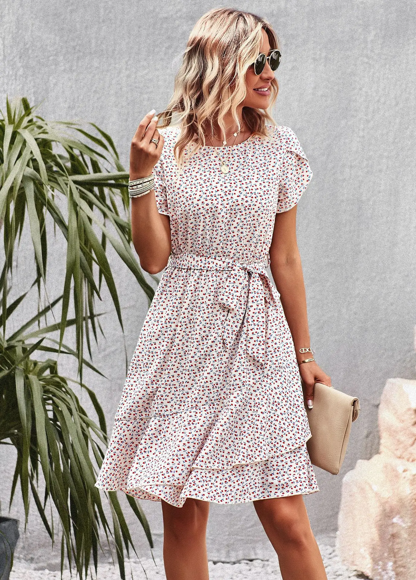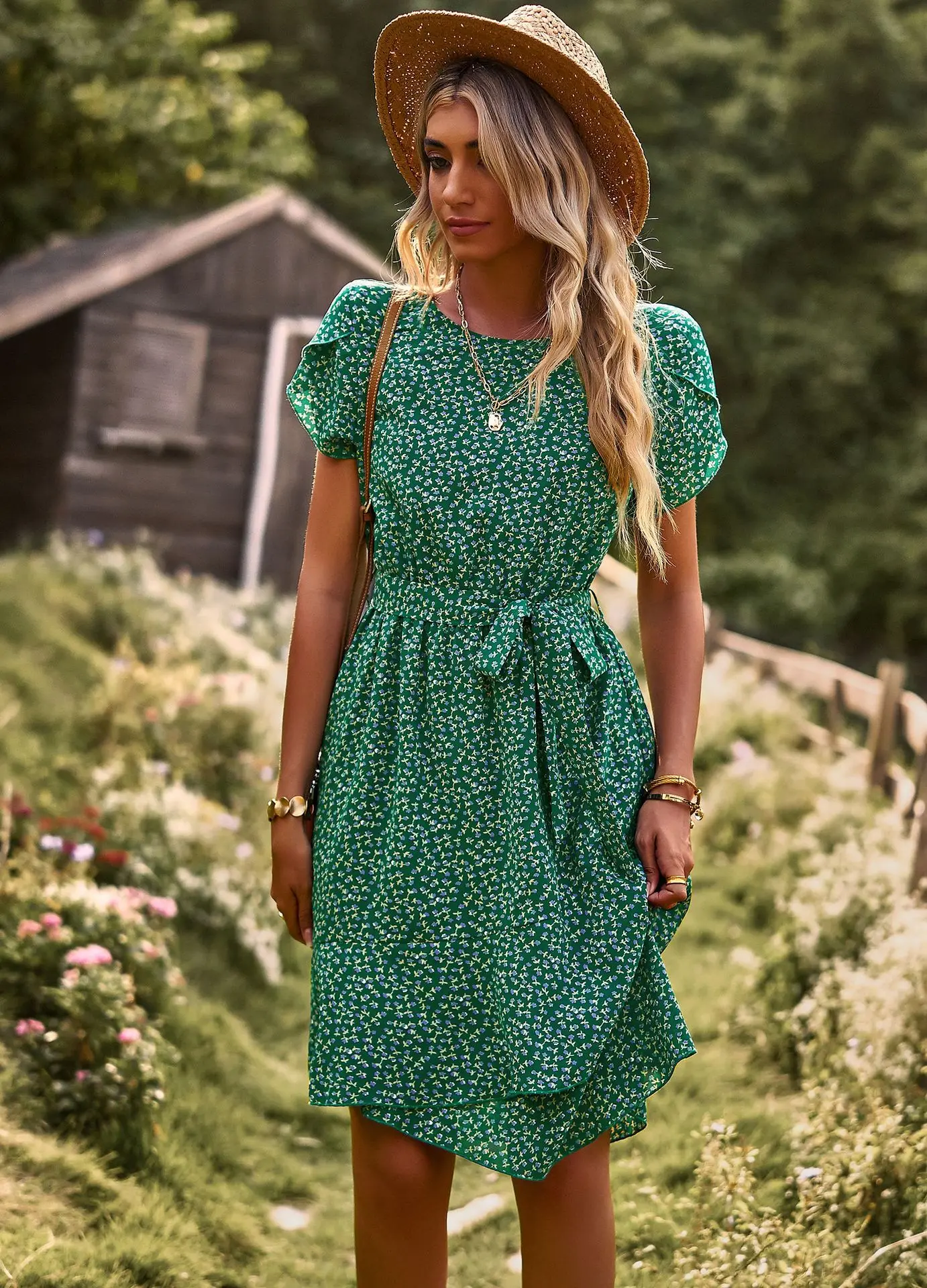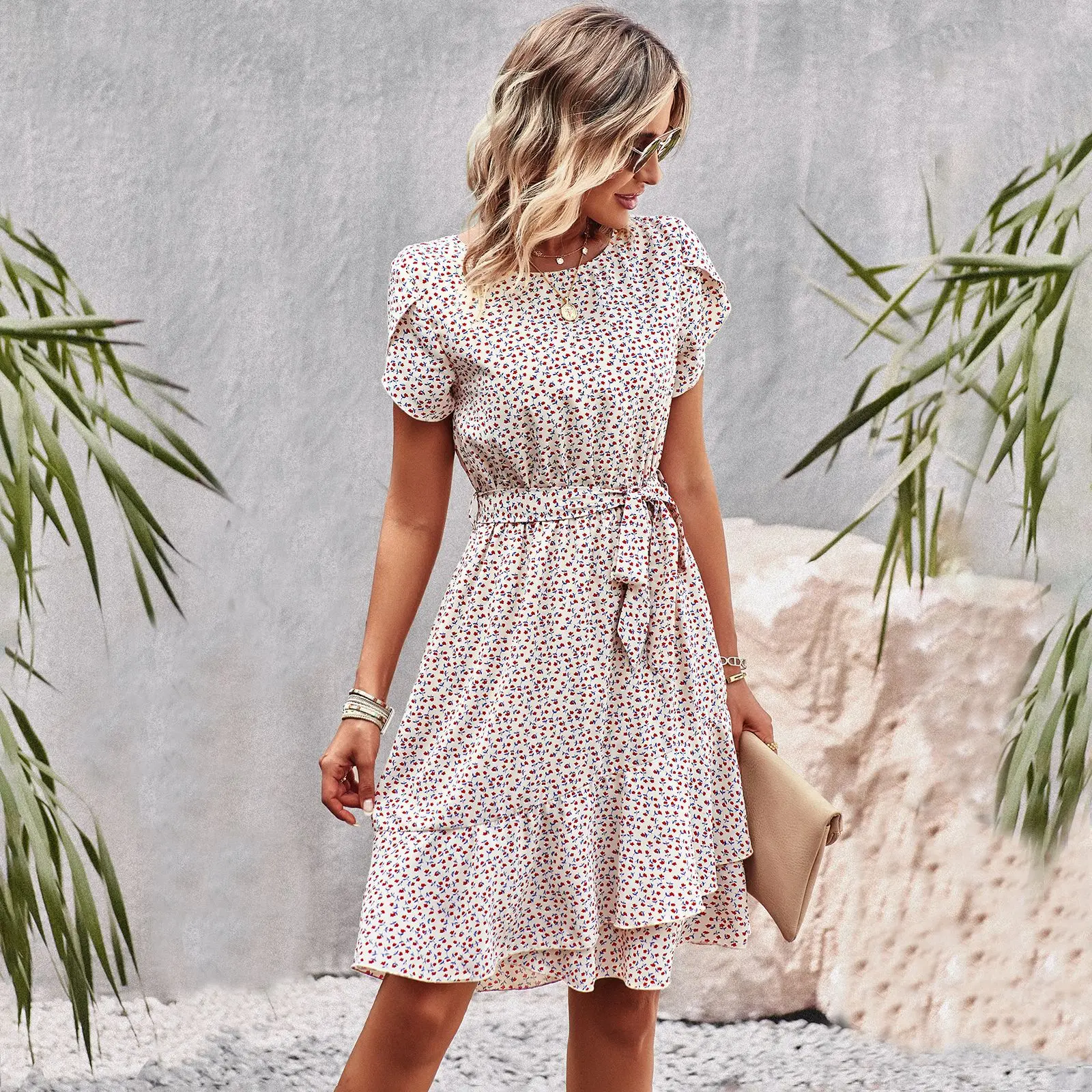 Vestido Floral plisado de cintura alta con tirantes para mujer, cuello redondo, estampado informal, Verano