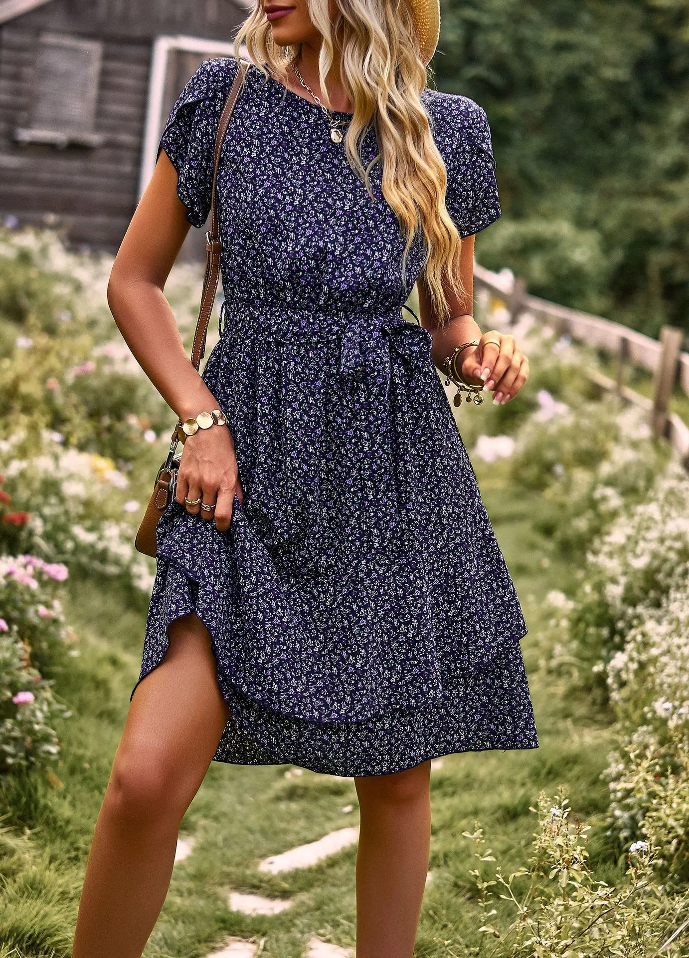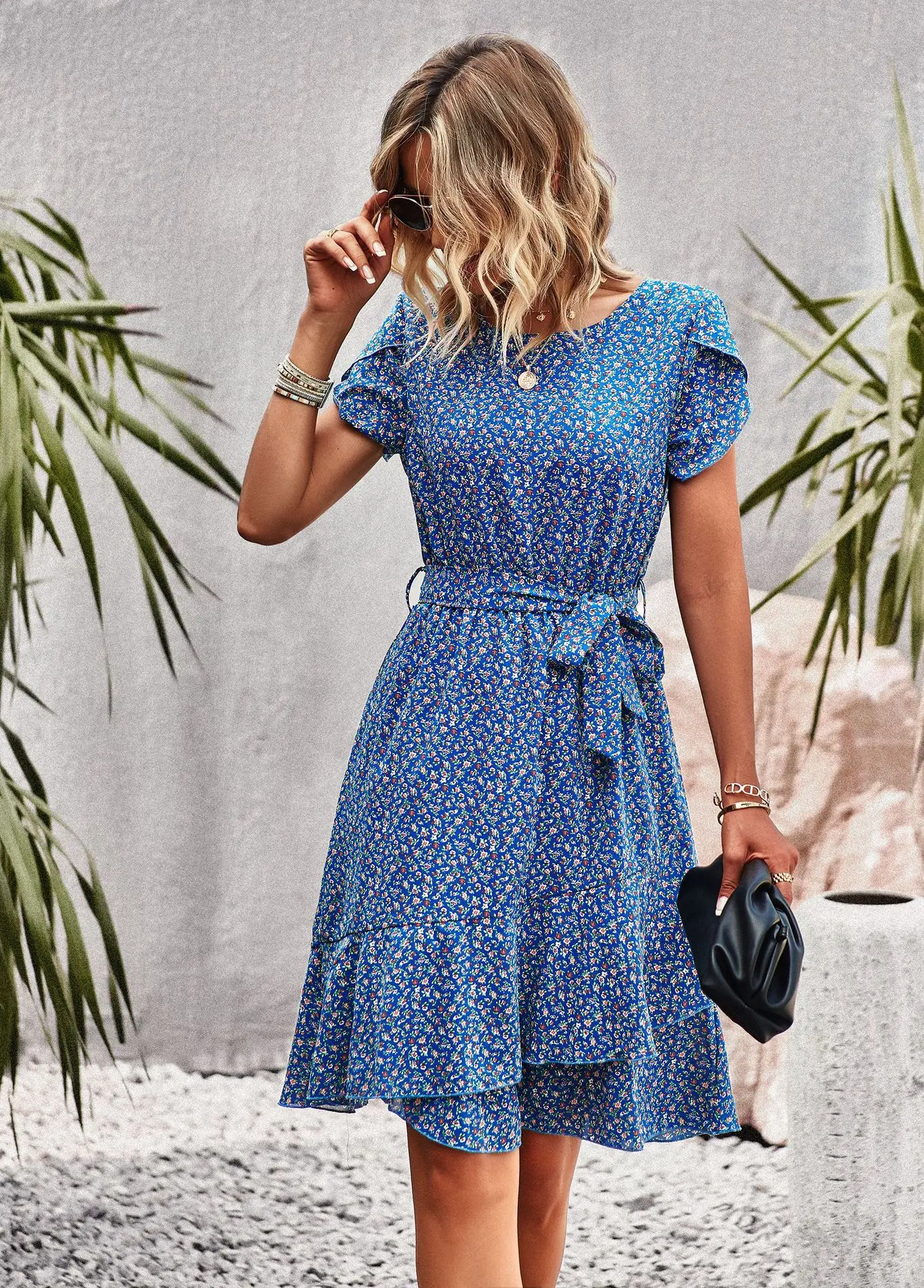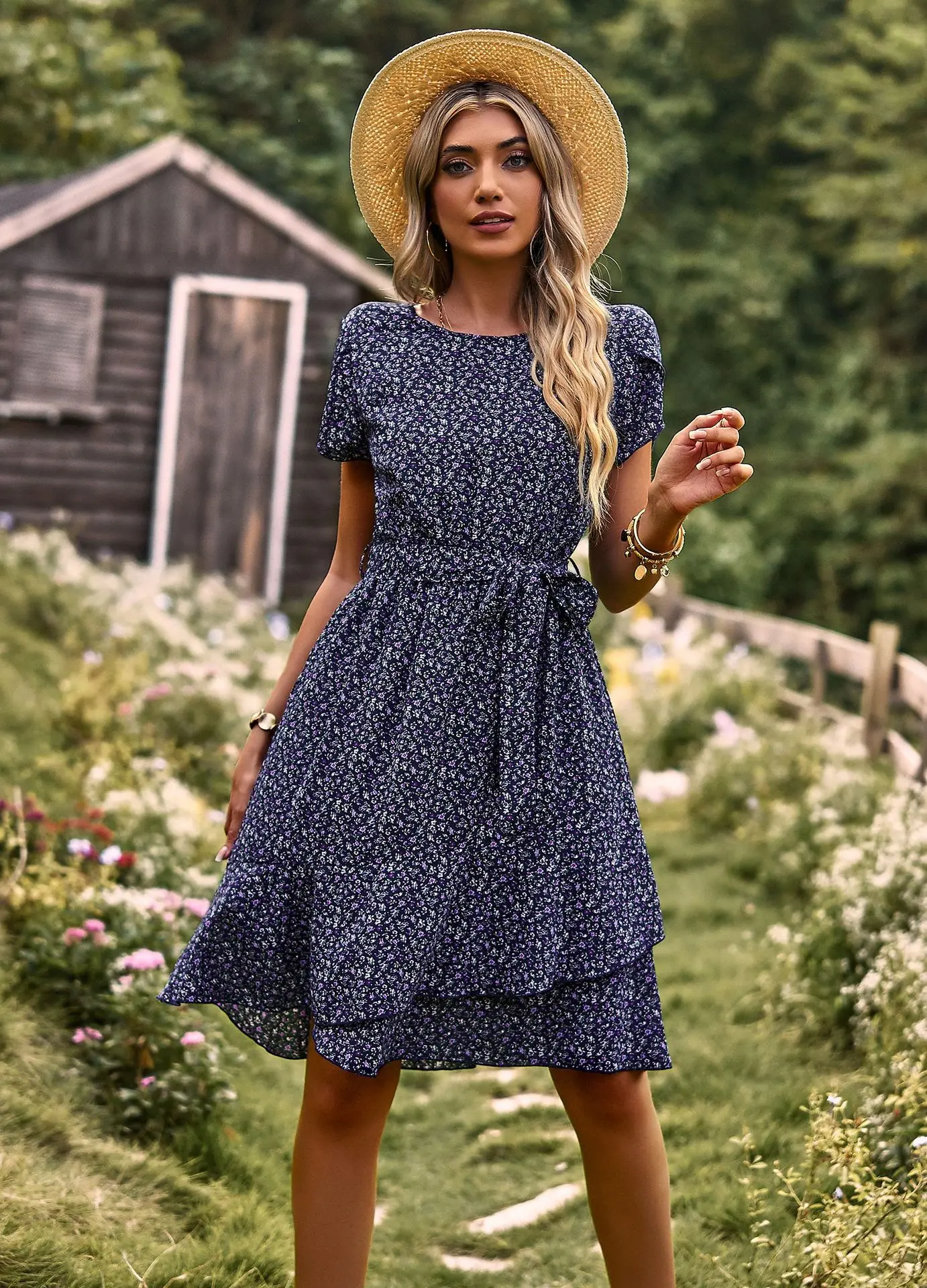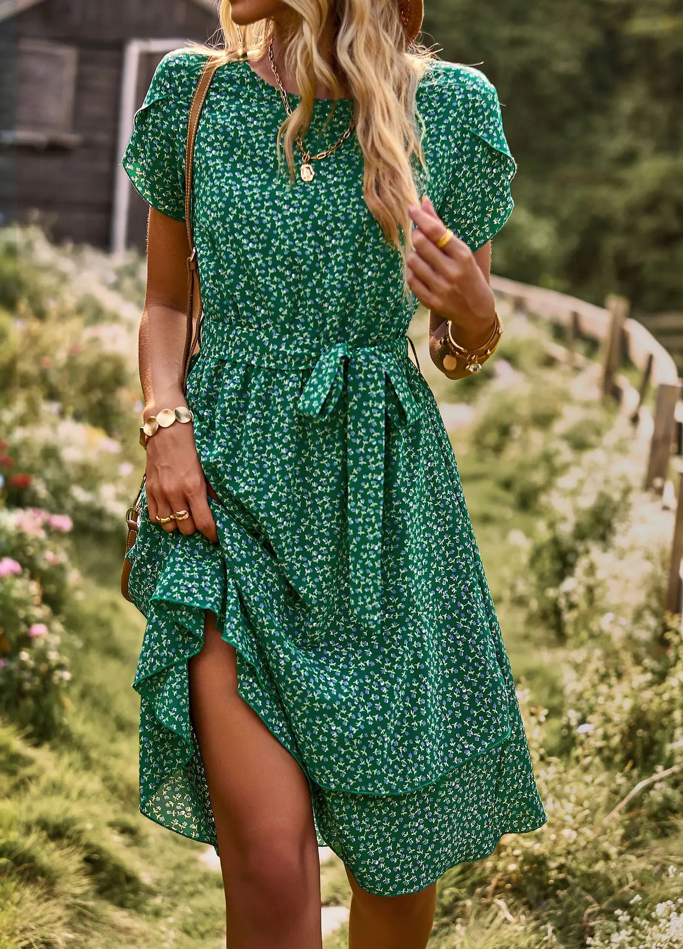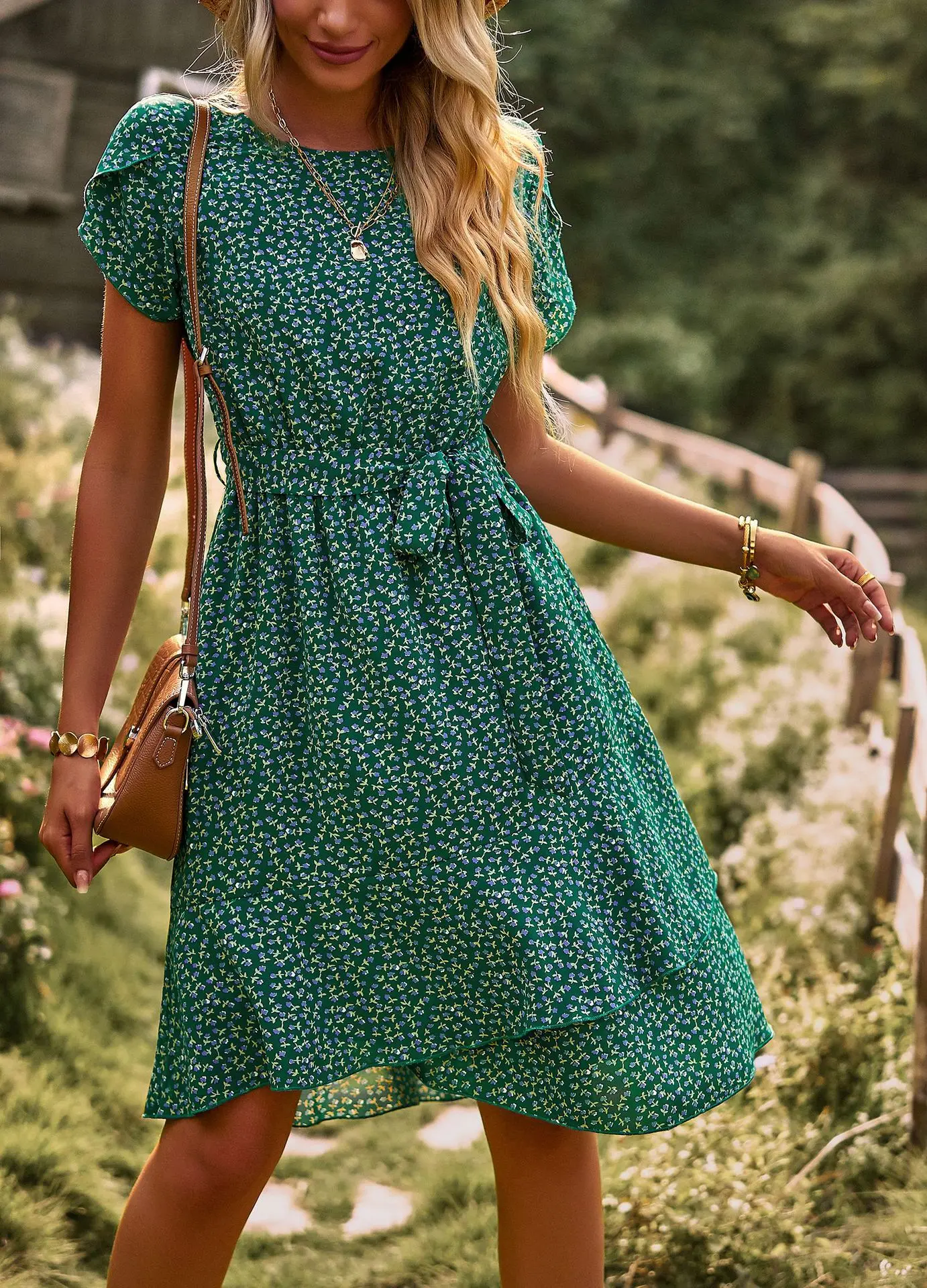 Vestido Floral plisado de cintura alta con tirantes para mujer, cuello redondo, estampado informal, Verano