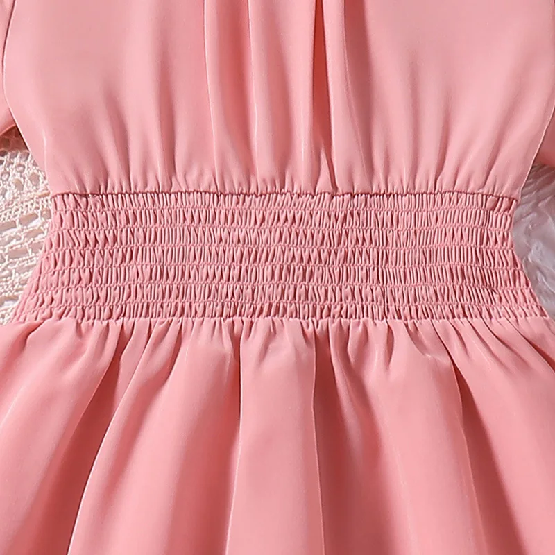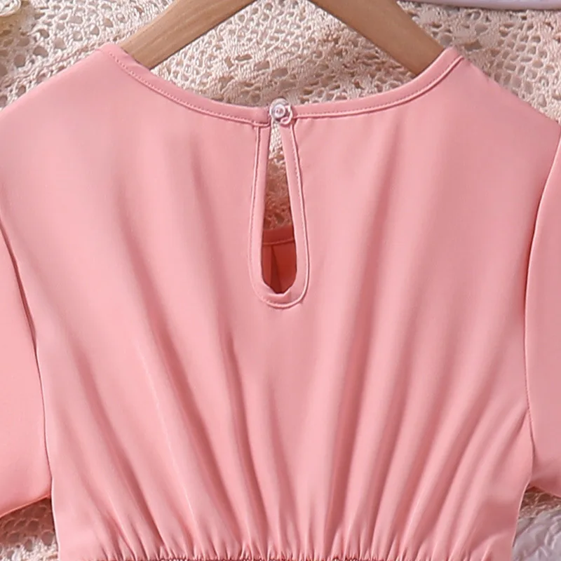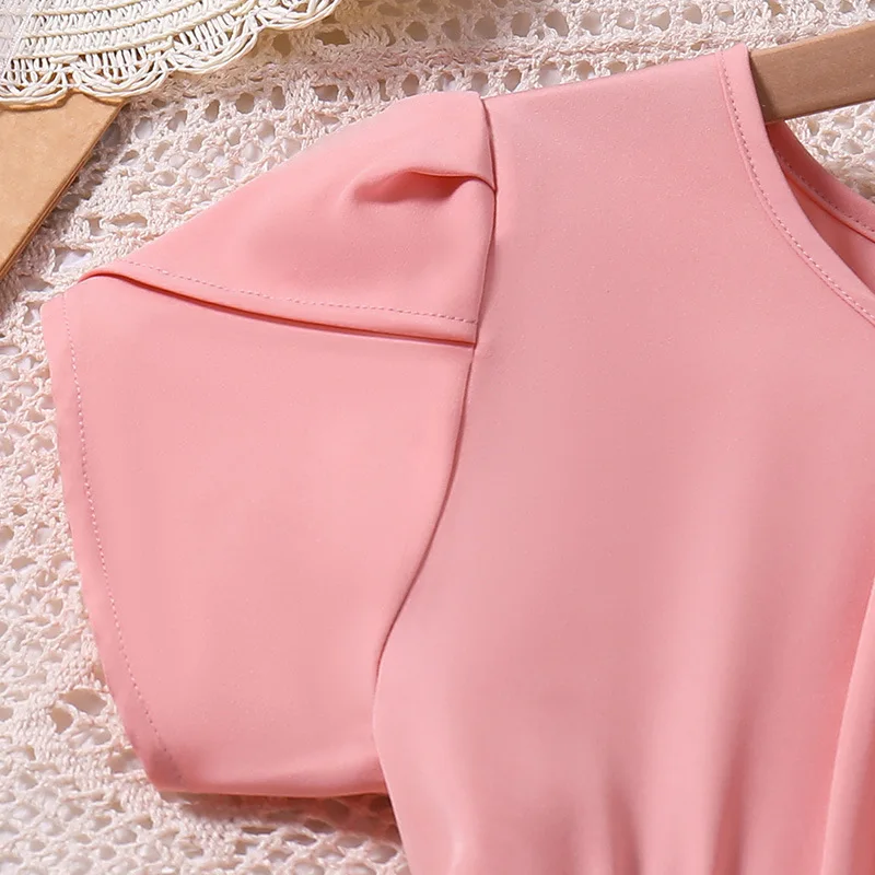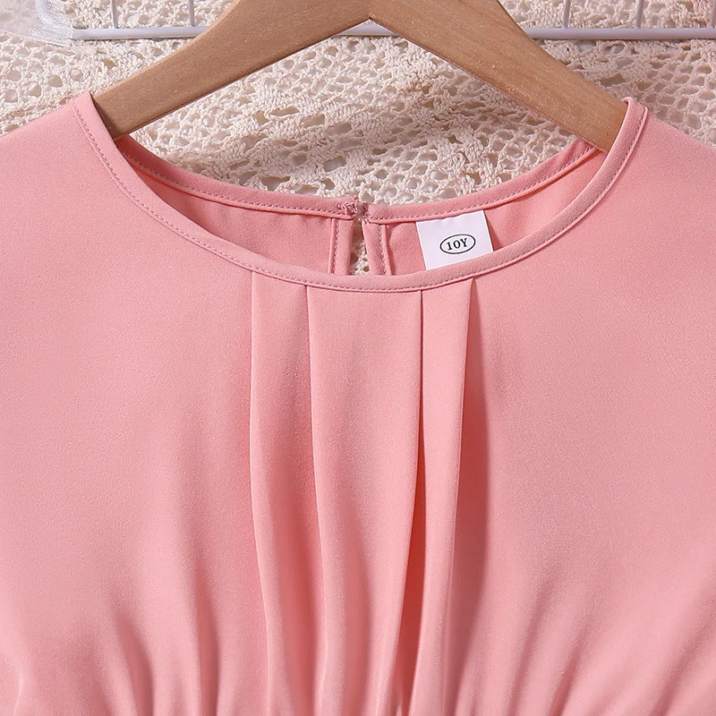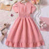 Vestido informal de verano para niña, ropa de manga corta, rosa, cintura alta, línea A, de princesa, 7 a 14 años, 2024