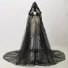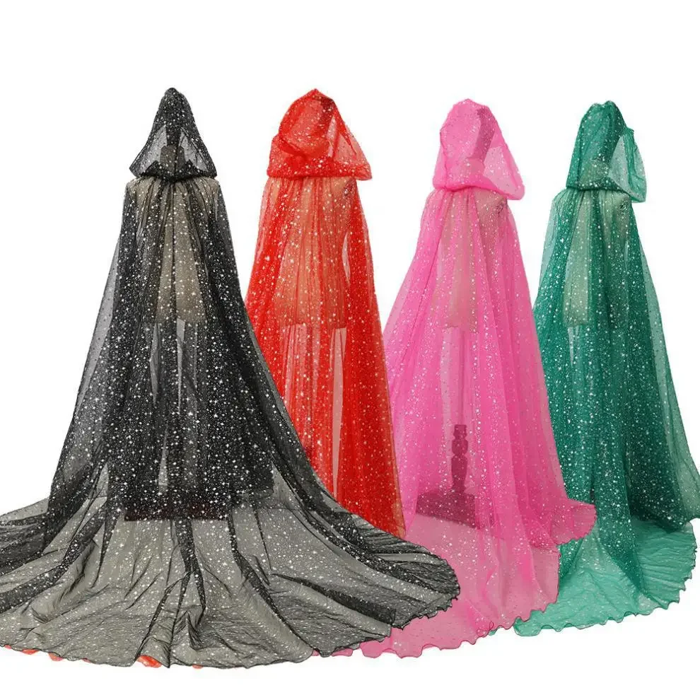 Vintage boda fiesta faja capa cola larga Hada Medieval negro verde chal gótico Wicca bata brillante Halloween bruja capa capucha