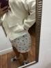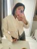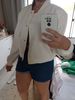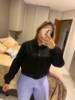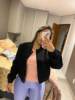 La chaqueta es muy bonita. Gran calidad y vale la pena el dinero. Me queda bien. Normalmente soy un tamaño mediano y tengo el pecho grande. El tamaño pequeño me encaja perfectamente. Tengo suficiente espacio para abrocharlo.
