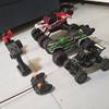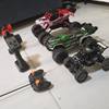 3. Coche de juguete rojo de 37cm y coche de juguete verde, coche de juguete rojo de 28cm hecho de plástico y otros coches de juguete hechos de alguna aleación.